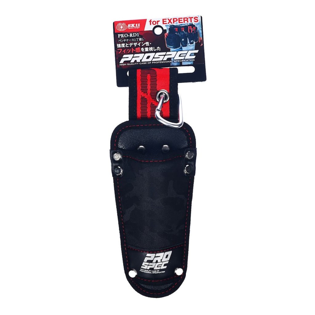 The SK11 Combination Plier Pouch, model PRO-RD1, is designed with professionals in mind, emphasizing strength, design, and fit. At 95 mm in width, 250 mm in height, 40 mm in depth, and 90 g in weight, this pouch is perfect for storing and carrying tools. The belt loop is crafted from a flexible material, ensuring it fits comfortably on belts up to 60 mm wide.