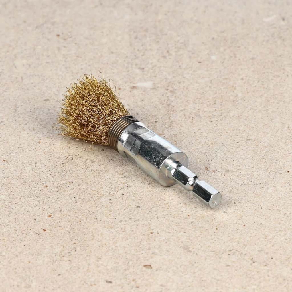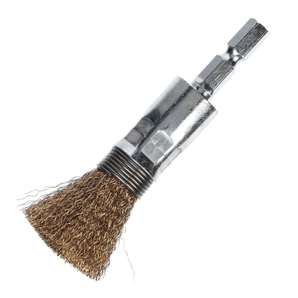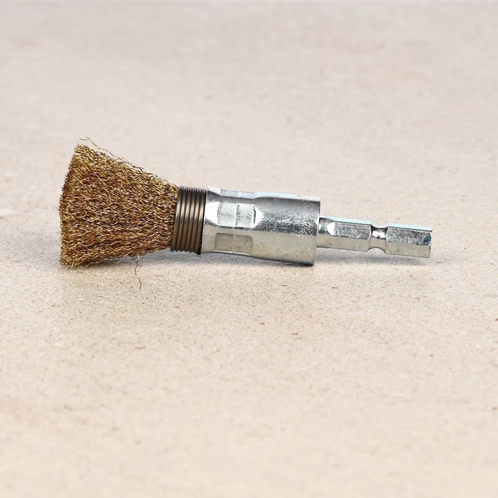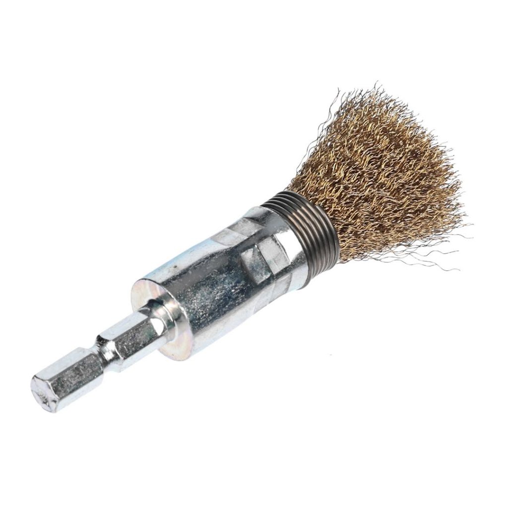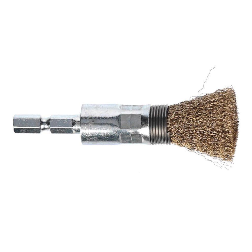 SK11 Crimped Brass Wire End Brush with 6.35 mm Hex Shank - 15 mm