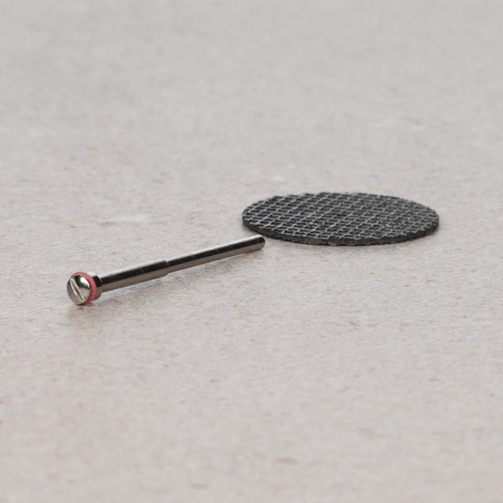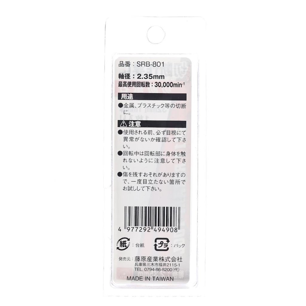 The SK11 Cut Off Rotary Burr, model SRB-801, is ideal for cutting tasks on metal and plastic materials. Featuring a robust, reinforced mesh design, this burr measures 32 mm in diameter and 1 mm in thickness, with a 2.35 mm shank. It operates safely at a maximum rotational speed of 30000 RPM, ensuring efficient and precise cuts.