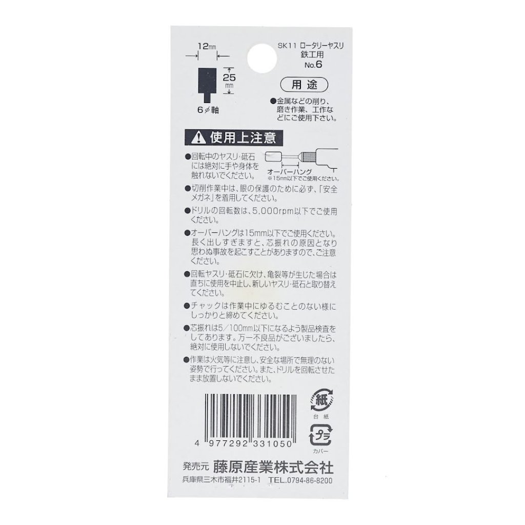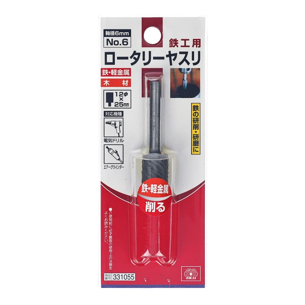 The SK11 Cylinder Rotary Burr No.6 is an ideal tool for grinding and polishing metal, light metals, and wood. This precision tool can be used with electric drills and air grinders for versatile applications. Featuring a 6 mm shank and a grinding stone width of 12 mm, the rotary burr is designed for detailed and efficient performance. Ensure an overhang of 15 mm or less and use at drill speeds below 5000 RPM for optimal safety and results.