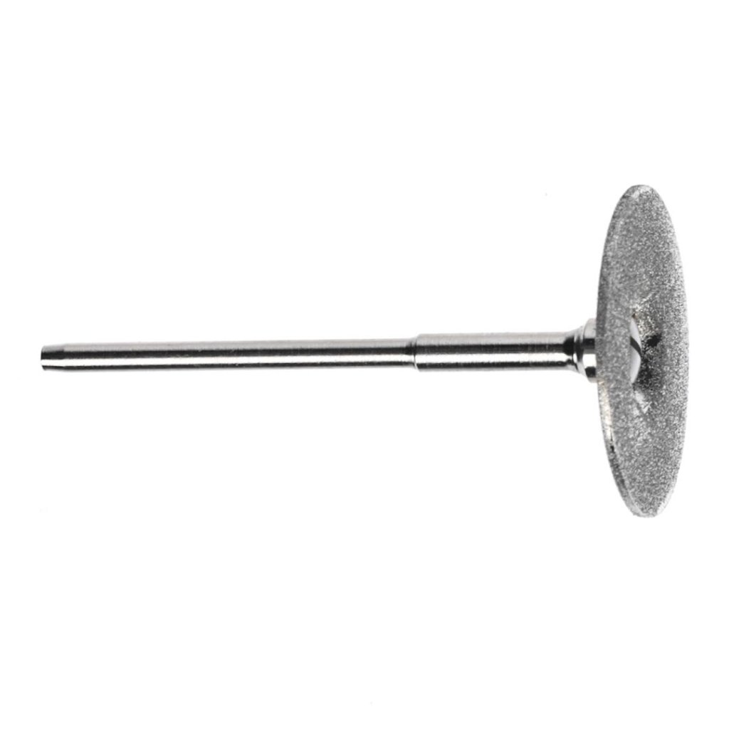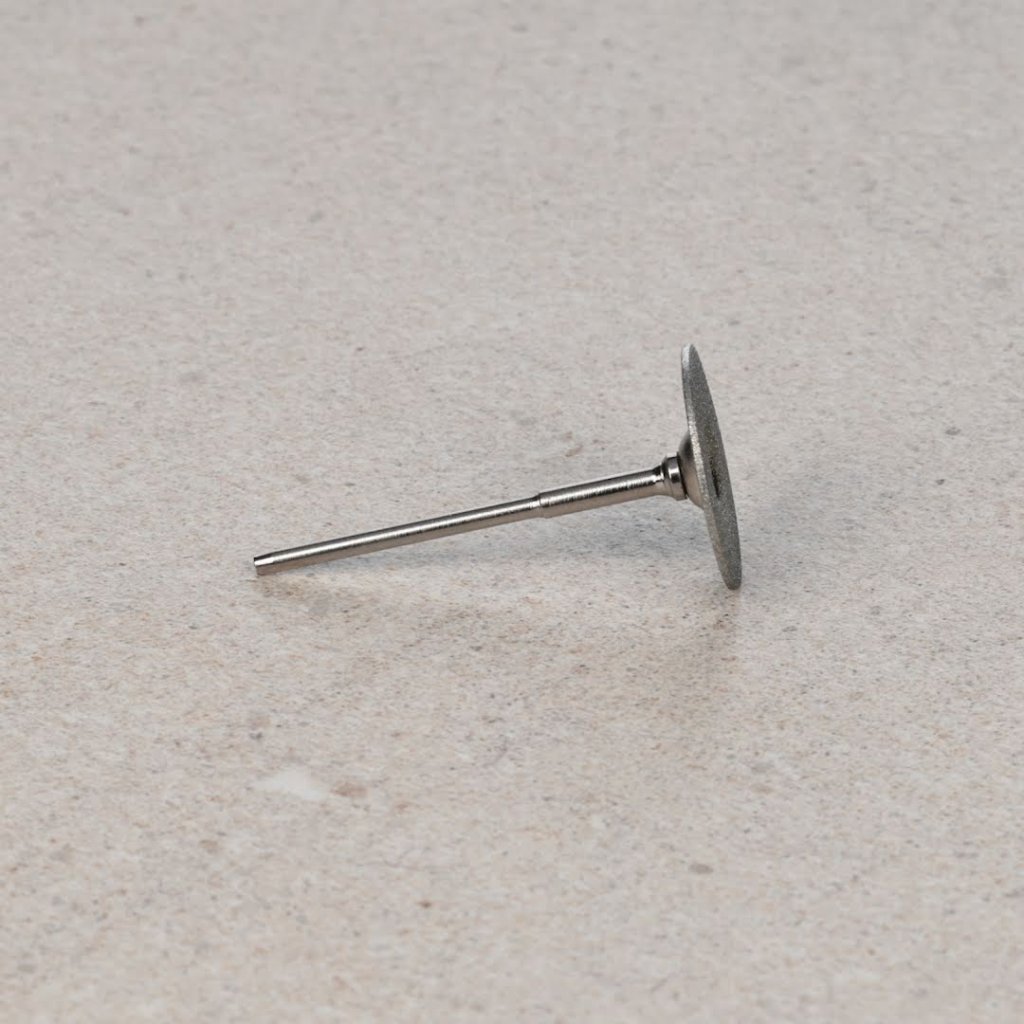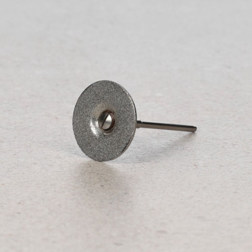 The SK11 Depressed Center Diamond Grinding Wheel, model SRB-831, is ideal for cutting and surface processing thin shells, glass, and ceramics. Its offset design makes it easy to handle areas that are challenging for traditional disc cutters. The wheel measures 25 mm in diameter with a 2.35 mm shank and supports a maximum rotational speed of 30000 RPM.