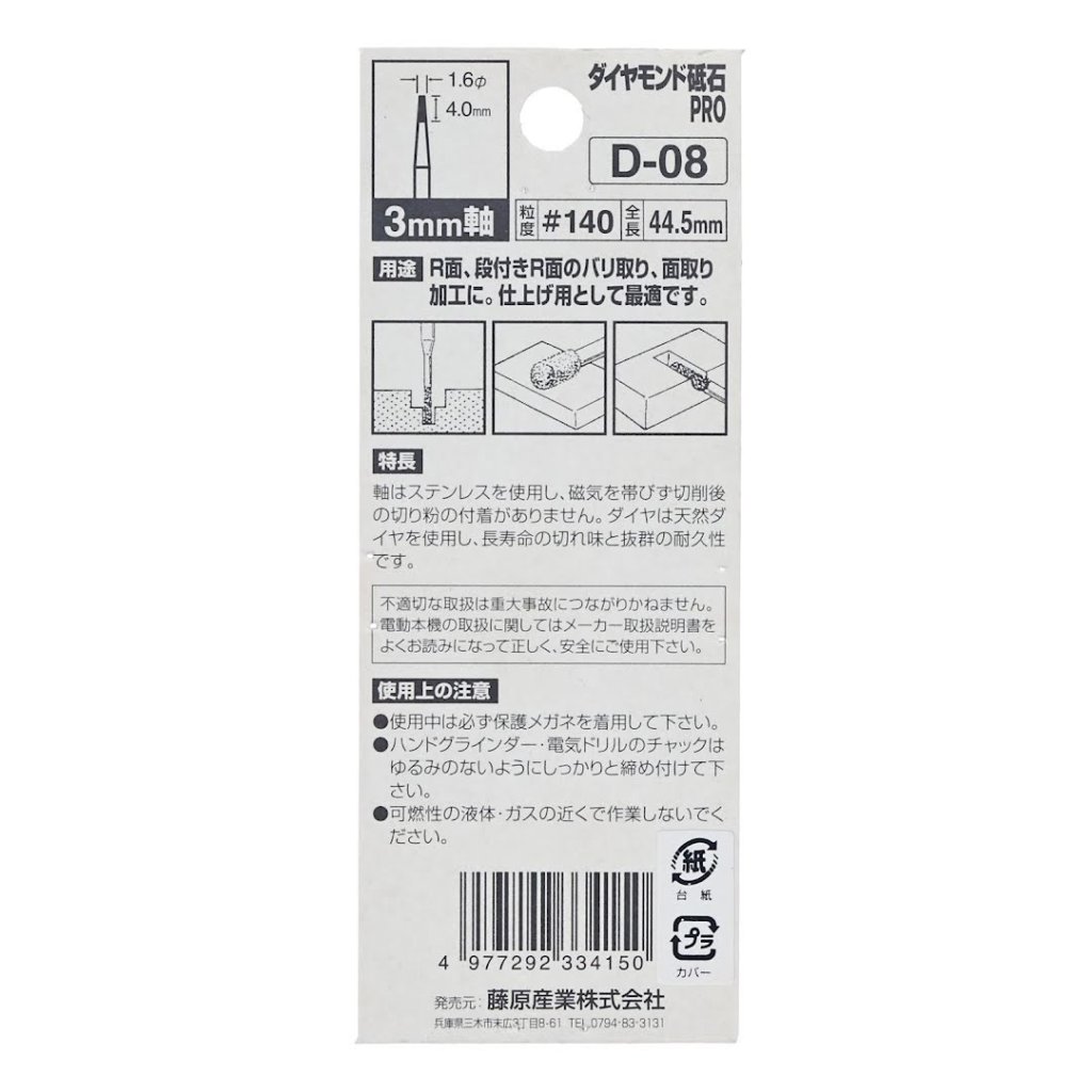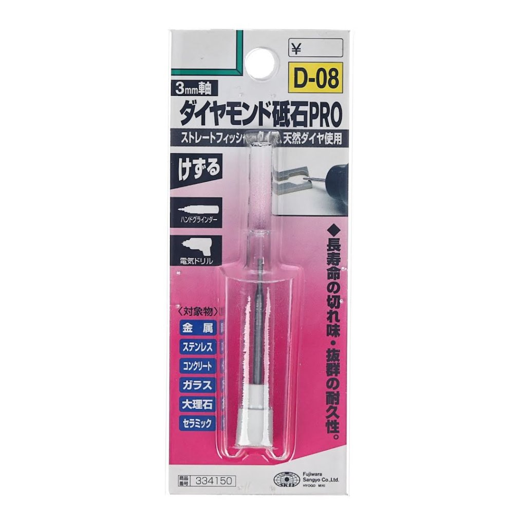 The SK11 Diamond Coated Rotary Burr, model D-08, is designed for processing various materials such as metal, stainless steel, concrete, glass, marble, and ceramics. Featuring a 3 mm stainless steel shank that prevents magnetic attraction and chip adhesion, this tool ensures long-lasting sharpness and exceptional durability with its natural diamond coating. It is compatible with electric drills and hand grinders, making it a versatile addition to your toolkit.