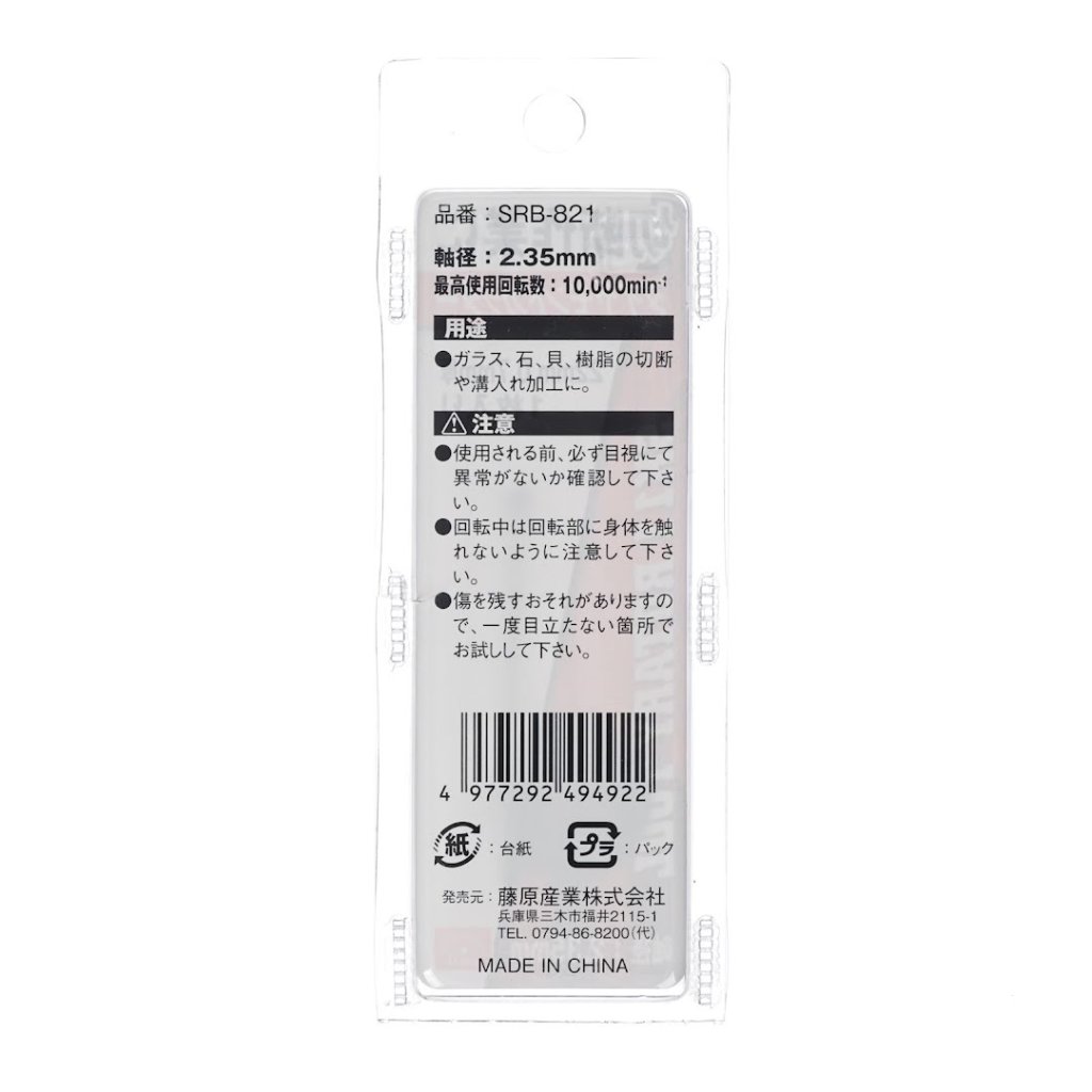 The SK11 Diamond Cutting Wheel, model SRB-821, is ideal for cutting and grooving tasks on glass, stone, shell, and resin. This precision tool features a 22 mm diameter and 0.7 mm thickness and comes with a 2.35 mm mandrel for easy attachment. It can handle up to 10000 RPM and ensures smooth and efficient performance. Remember to always operate within the specified rotational speed for safe use.