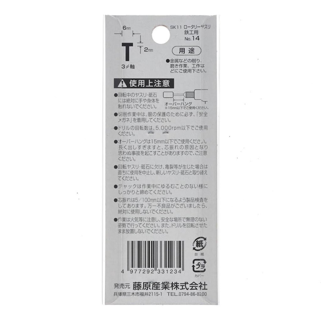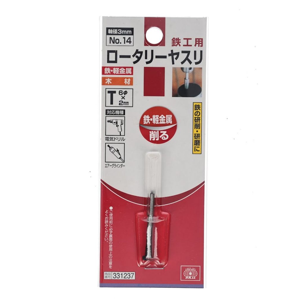 The SK11 Disc Shape Rotary Burr No.14 is ideal for grinding and polishing metal, light metals, and wood. This metal burr can be used with electric drills and air grinders, offering versatility for various projects. It features a 3 mm shaft diameter and a 6 mm width burr, making it suitable for detailed and precise work. Please ensure the drill speed is kept below 5000 RPM for optimal performance.