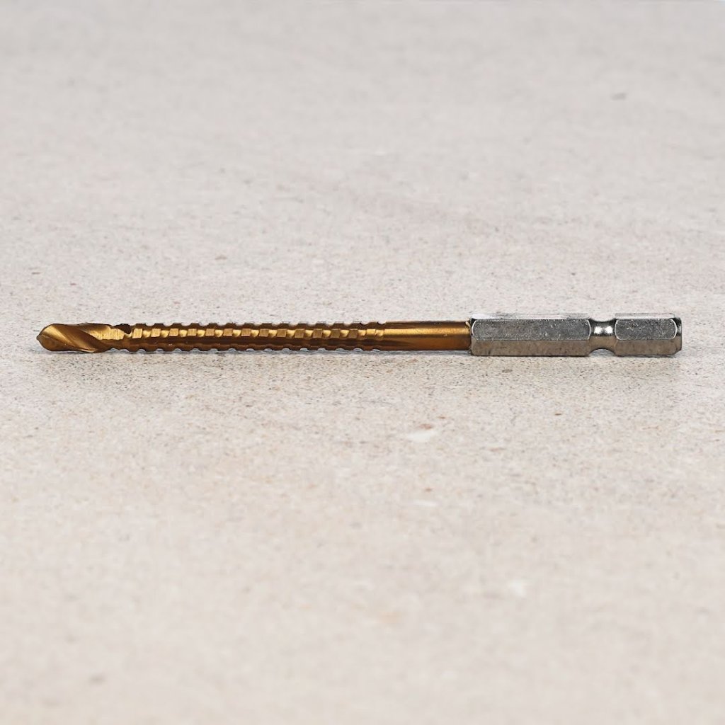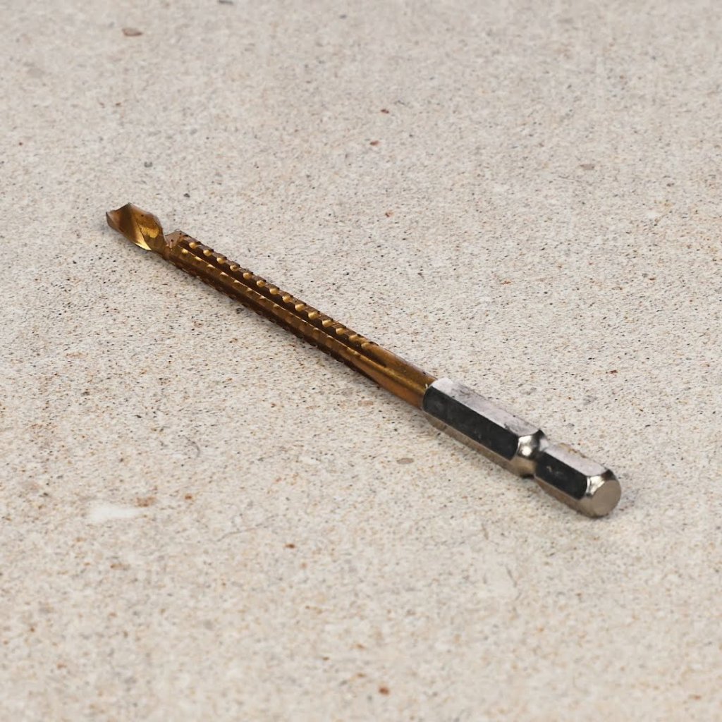 The SK11 Drill and Saw Bit is designed for efficient wood and thin metal drilling and burr removal. This versatile bit features high-speed steel construction for superior durability and a hex shank for quick attachment to impact drivers. The thinned tip ensures excellent material engagement, making it a reliable choice for various DIY and professional applications.