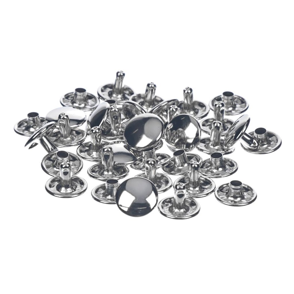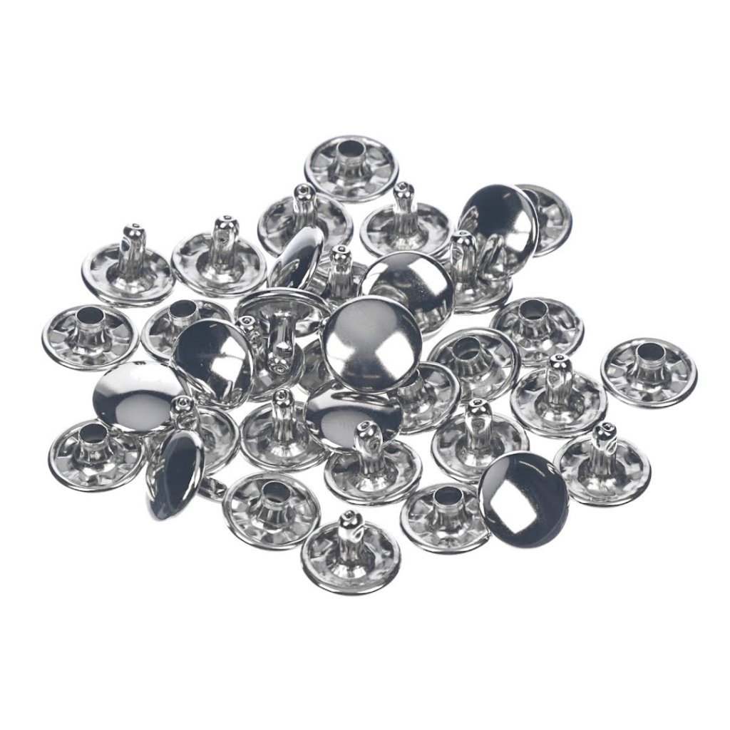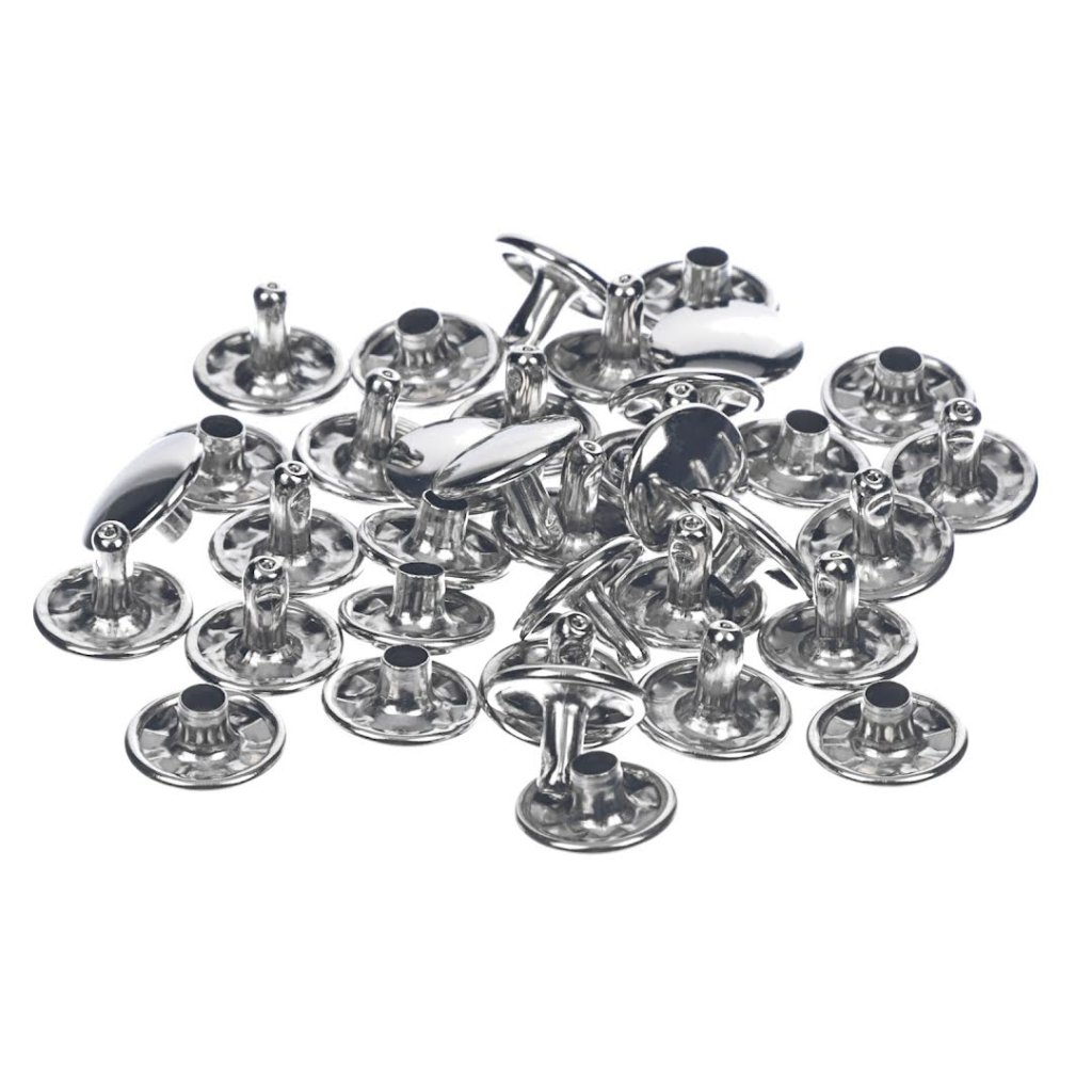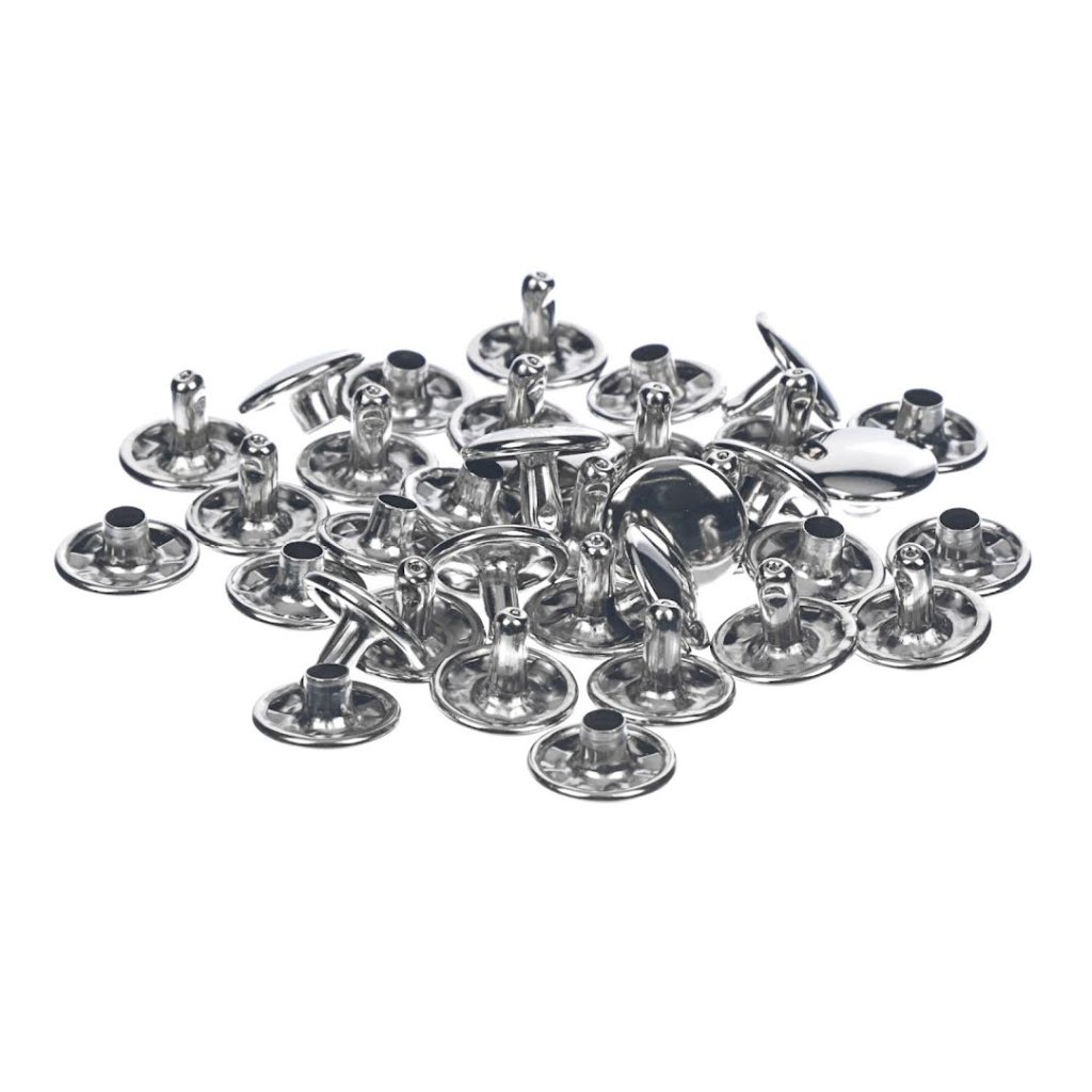Easy-to-install SK11 snap buttons, compatible with SK11 Punch No. 500, include 12 sets for materials up to 1.5 mm thick.