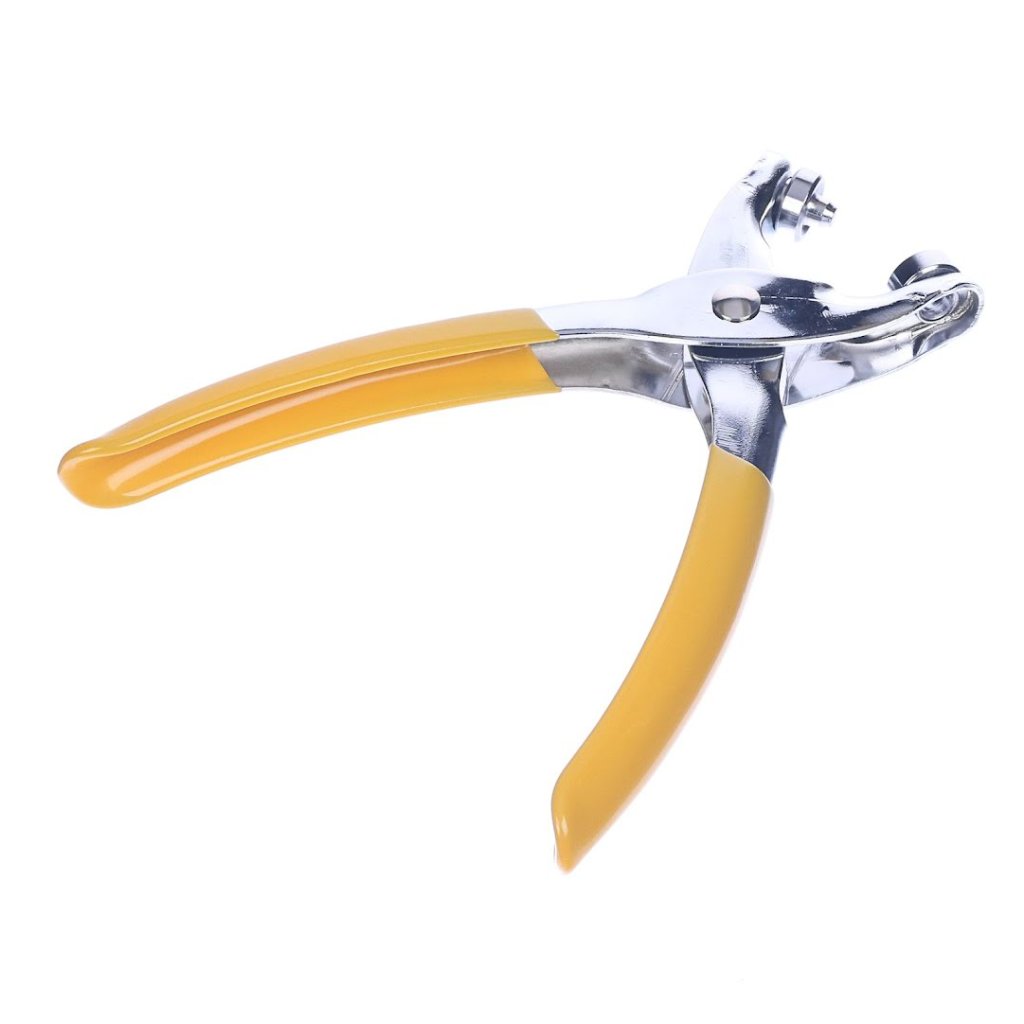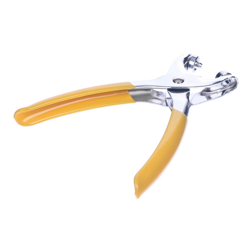 The SK11 Eyelet Pliers, model No.200, is a compact-sized plier designed to reinforce and repair holes in materials such as cardstock, fabric, vinyl, leather, and leather goods. This tool features an easy-to-use plier format that significantly aids in prolonging the durability of items by attaching eyelets. It is versatile for various projects, with an eyelet hole diameter of approximately 6.0 mm and a maximum attachment thickness of about 2.5 mm. The pliers come with a bright yellow grip, making them easy to locate among other tools. Please note that the quantity of eyelets is based on weight, and although the actual count may vary, the package will contain at least the number of eyelets indicated.