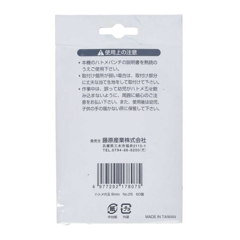 The SK11 Eyelets, model No.25, are ideal for reinforcing and repairing holes in cardboard, fabric, vinyl, and leather. With a size of width 11 x height 11 x depth 4 mm and a weight of 20 g, these eyelets are designed to fit holes with a diameter of about 6.0 mm and a maximum attachment thickness of 2.5 mm. The package contains approximately 60 pieces, compatible with SK11 Eyelet Pliers models No.200 and No.400. These eyelets are essential for ensuring the durability and integrity of your materials.