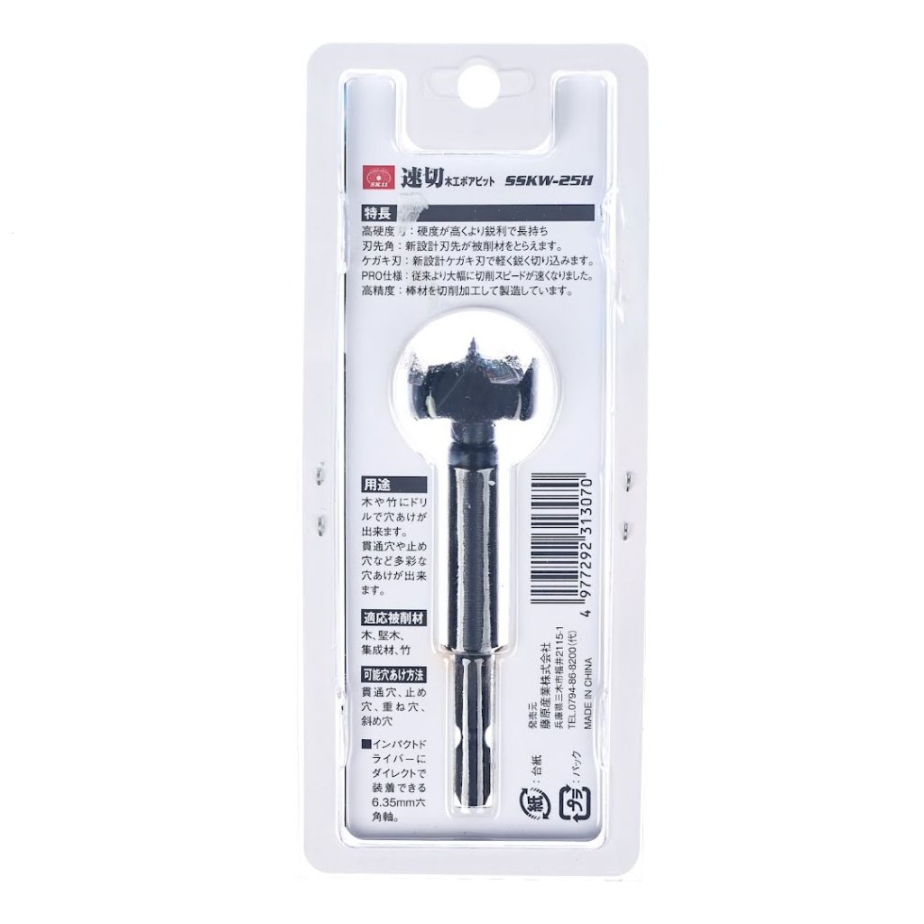 The SK11 Fast Cutting Forstner Bit, model SSKW-25H, offers exceptional cutting performance for woodworking projects. This durable bit is perfect for drilling through wood, hardwood, laminated wood, and bamboo. Its 6.35 mm hex shank allows easy attachment to impact drivers, while the high-hardness blade ensures sharp and efficient cuts. The specially designed scribing blade provides light and precise incisions, making it ideal for various hole types, including through holes, blind holes, and angled holes.