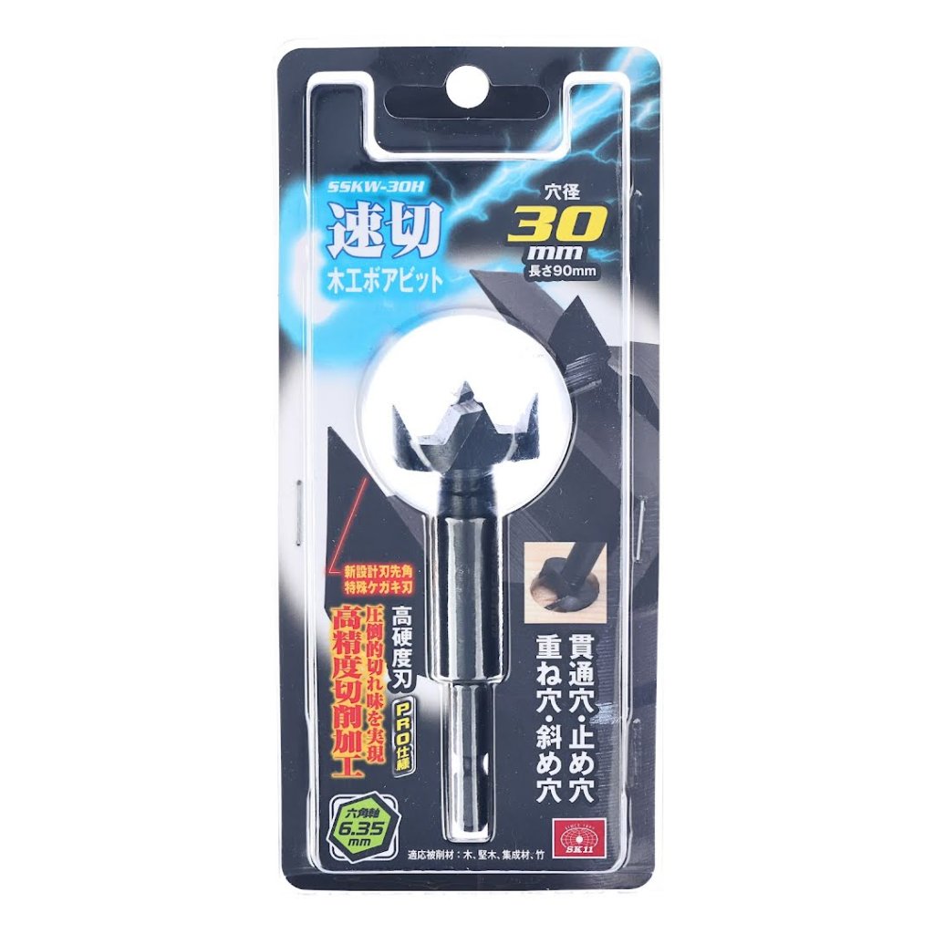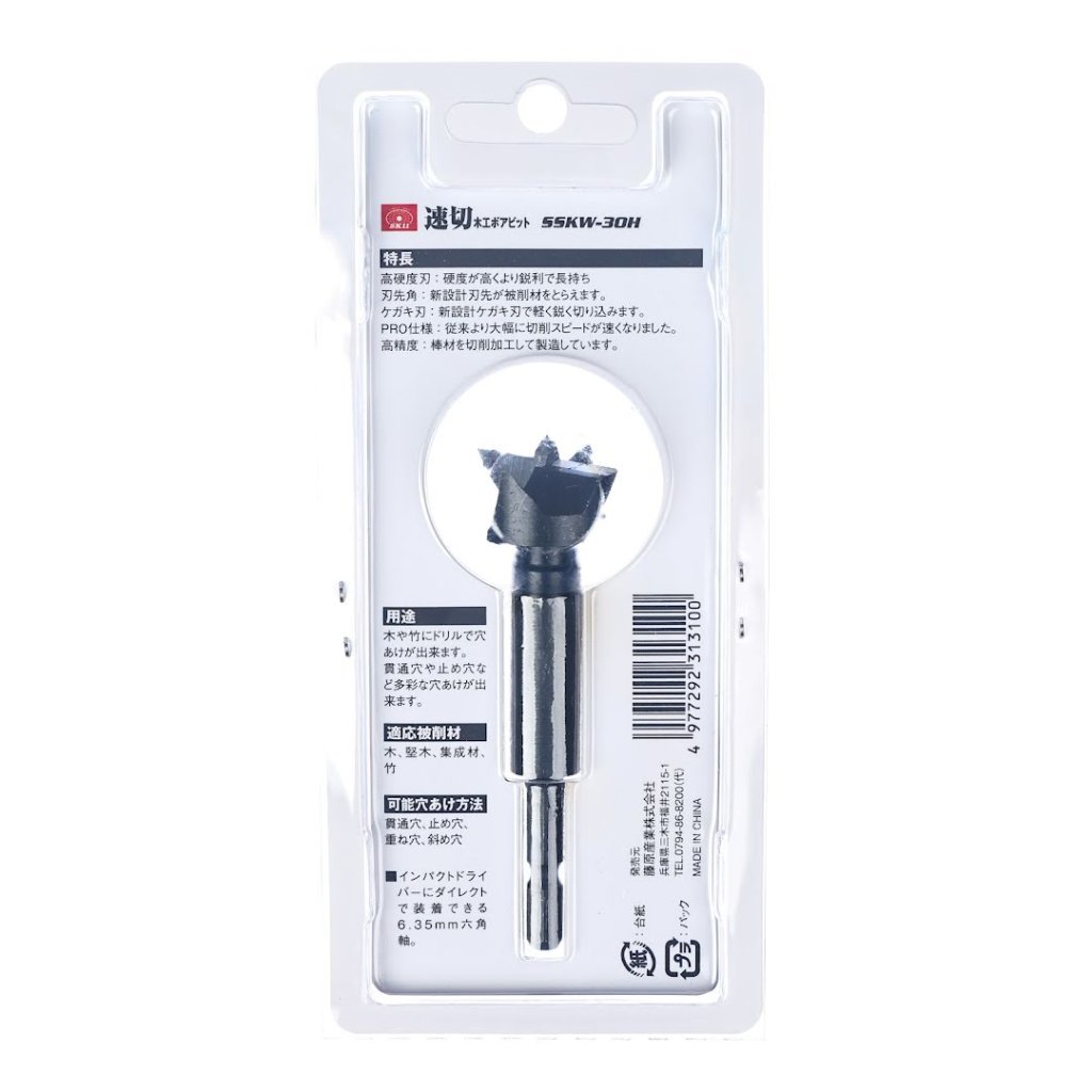 The SK11 Fast Cutting Forstner Bit, model SSKW-30H, is designed for fast and precise drilling in wood, hardwood, composite materials, and bamboo. Its high-hardness blade delivers sharper cuts than traditional models. The special scribing blade allows for effortless and accurate incisions, while the 6.35 mm hex shank easily attaches to impact drivers for versatile use.