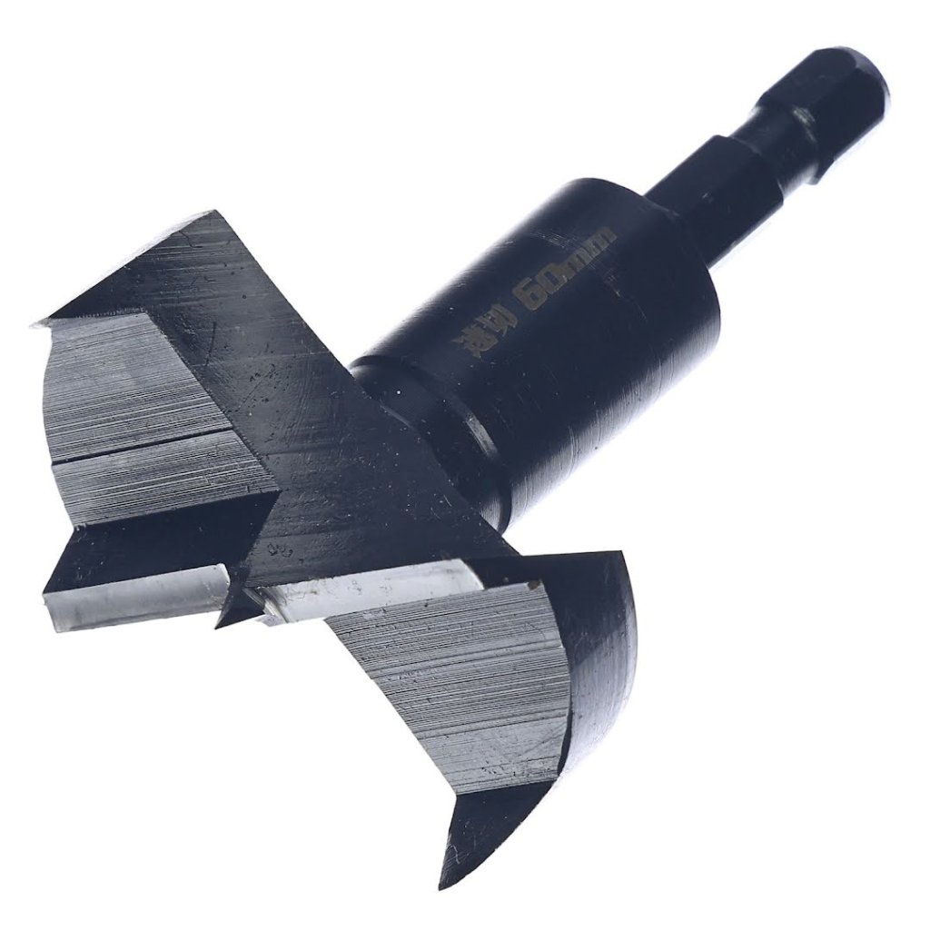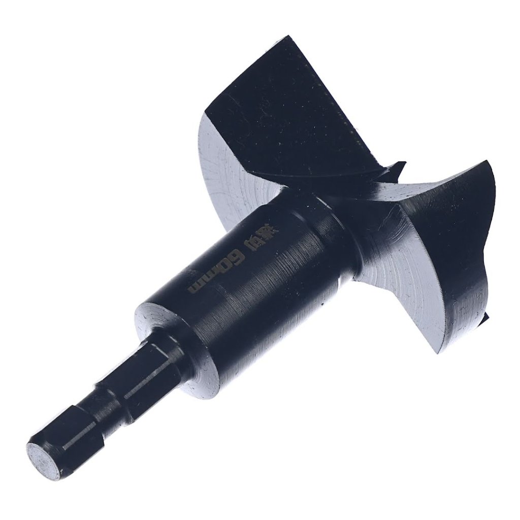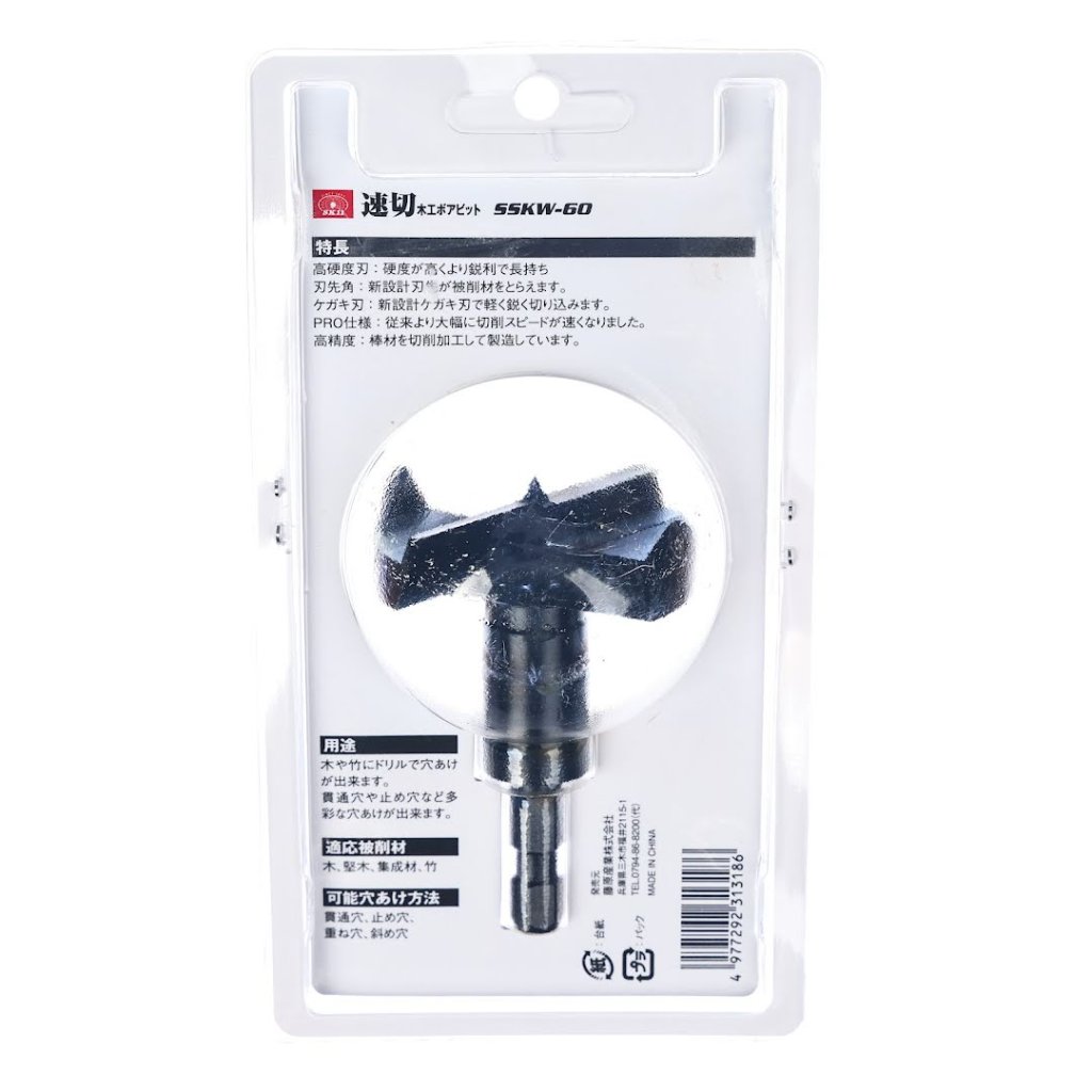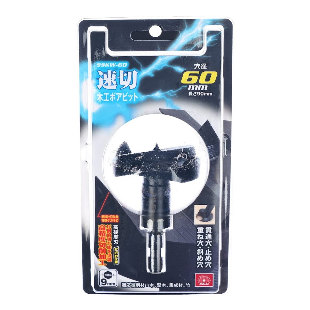 The SK11 Fast Cutting Forstner Bit, model SSKW-60, is designed for fast and precise drilling in wood, hardwood, plywood, and bamboo. This bit features a one-piece forged construction and a high-hardness blade for exceptional durability and cutting efficiency. It has a 9 mm hex shank that ensures a secure fit in your drill and prevents slippage. The bit is versatile and capable of effortlessly creating through holes, blind holes, overlapping holes, and angled holes.