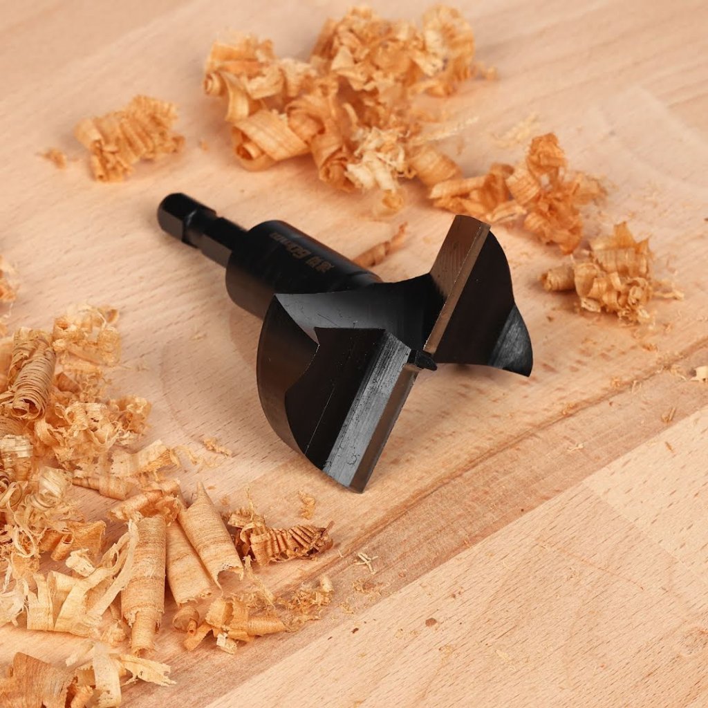 This SK11 40 mm woodworking bore bit has a hex shank and is excellent for accurate drilling with minimal resistance. It is well-suited for use with impact drivers and drills.