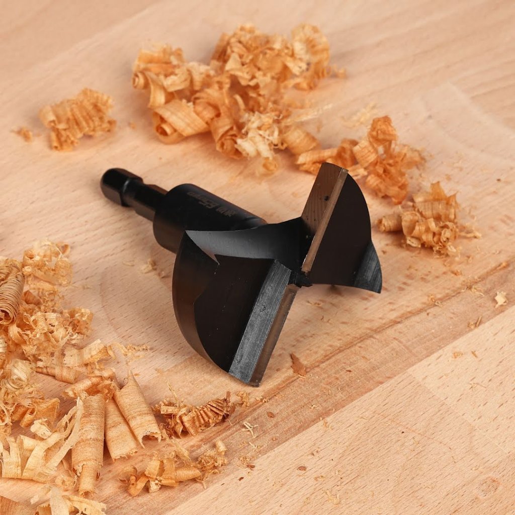 This SK11 40 mm woodworking bore bit has a hex shank and is excellent for accurate drilling with minimal resistance. It is well-suited for use with impact drivers and drills.