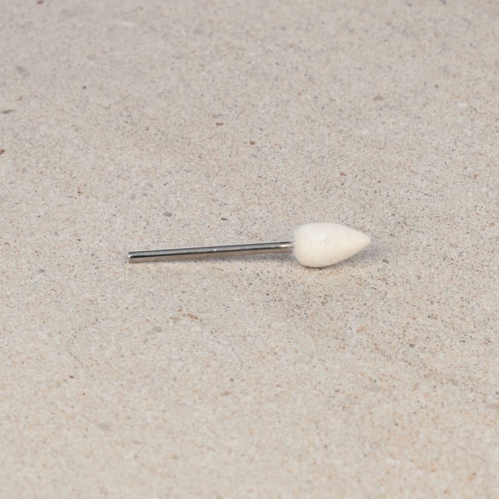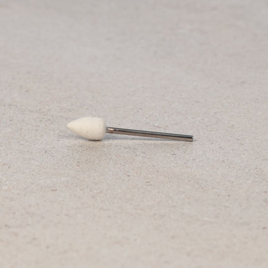 The SK11 bullet-shaped mounted felt polishes metal and cast iron with precision. Its 6 mm shank allows easy attachment to power tools.