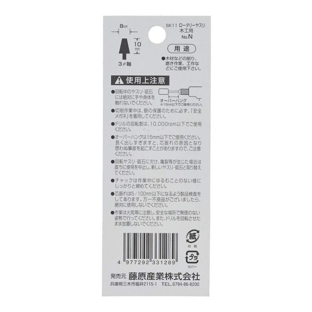 The SK11 Flat Nose Cone Rotary Burr, model No.N, is made for carving and smoothing wood surfaces. This wood burr, with a 3 mm shaft diameter, can be used with electric drills or air grinders, ensuring versatile use. The 8 mm width and 10 mm length make it ideal for detailed woodworking tasks.