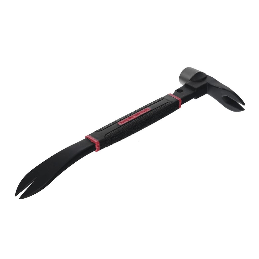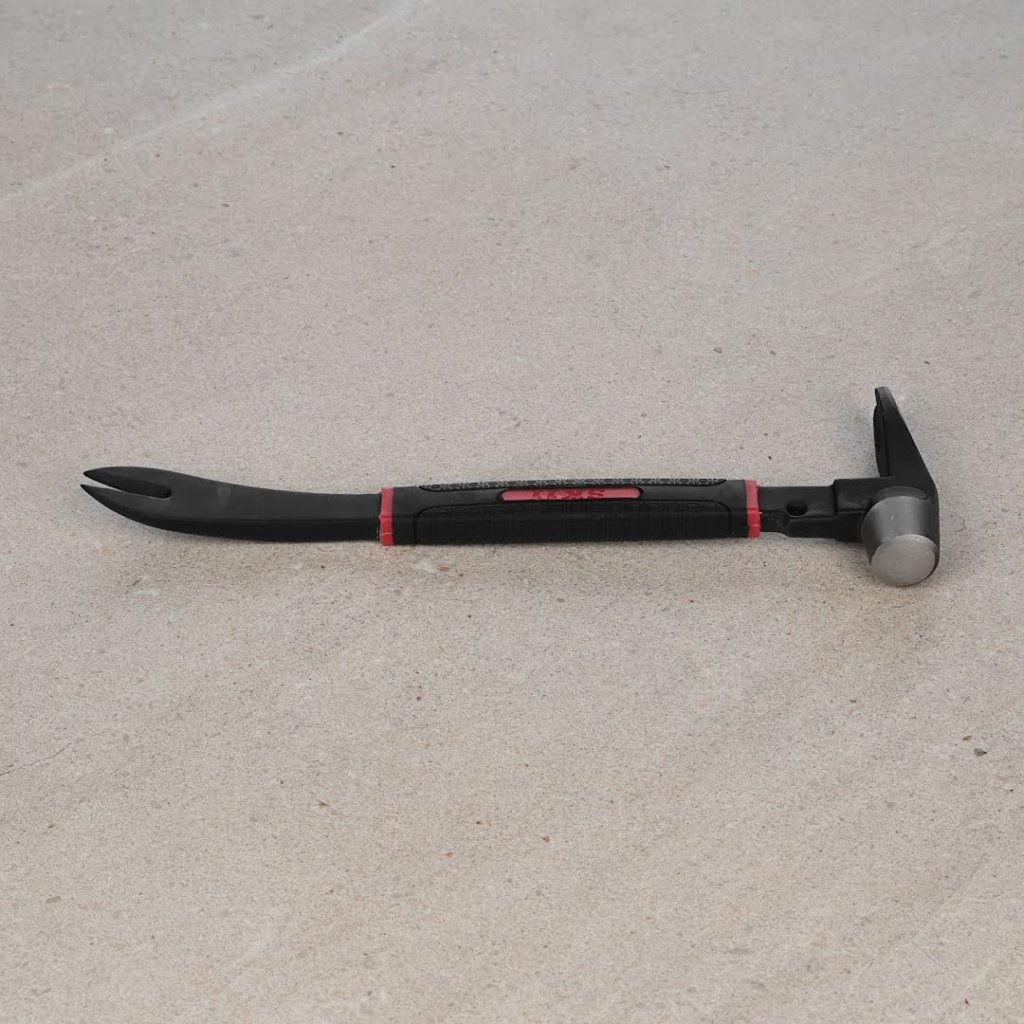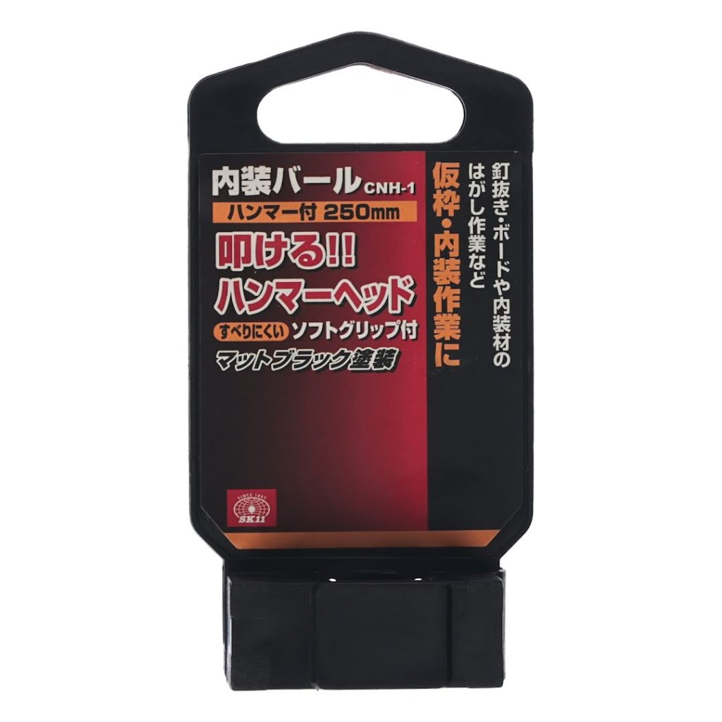 The SK11 Hammer Headed Claw Nail Puller, model CNH-1, is versatile for nail pulling and interior material removal. Its convenient hammer head allows for easy tapping during work. Its 250 mm size is ideal for most tasks, and the soft grip ensures a firm hold even with gloves. Additionally, the tool includes a connection point for a safety cord, enhancing its usability.