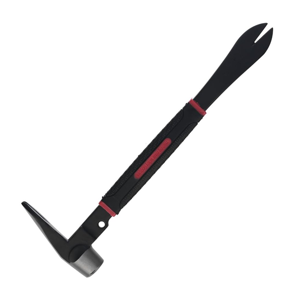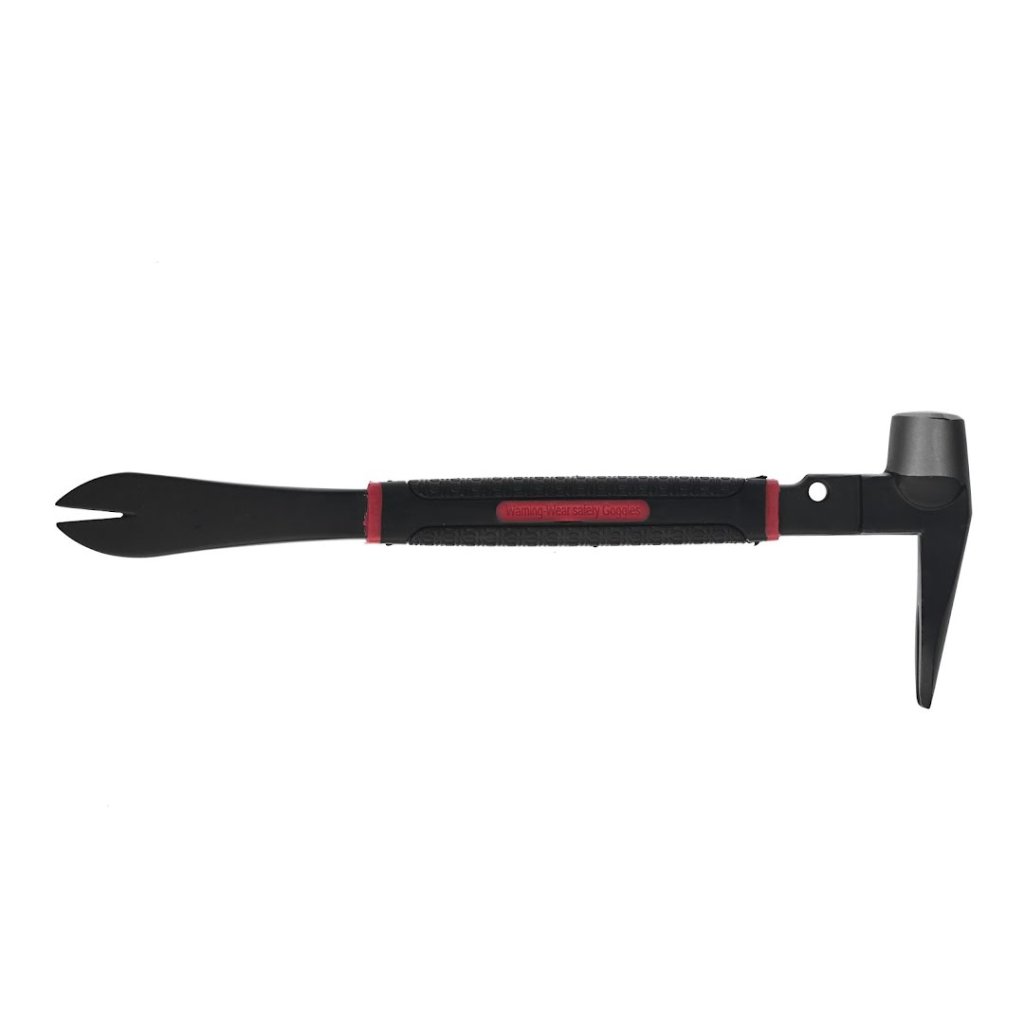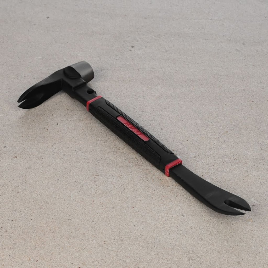 The SK11 Hammer Headed Claw Nail Puller, model CNH-1, is versatile for nail pulling and interior material removal. Its convenient hammer head allows for easy tapping during work. Its 250 mm size is ideal for most tasks, and the soft grip ensures a firm hold even with gloves. Additionally, the tool includes a connection point for a safety cord, enhancing its usability.