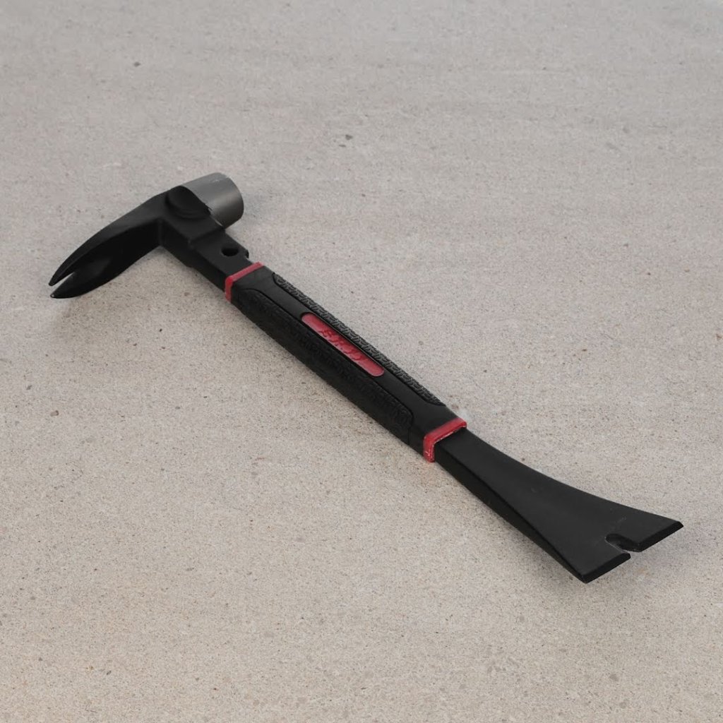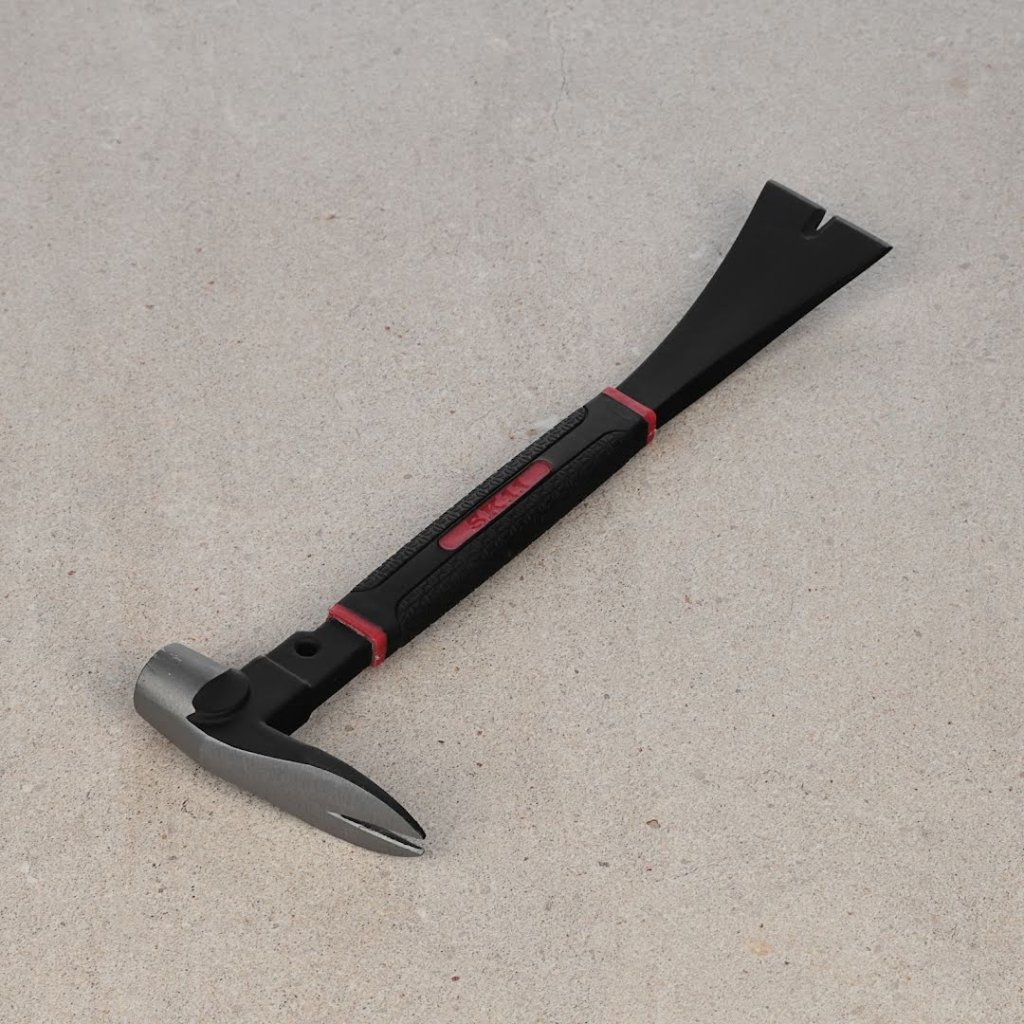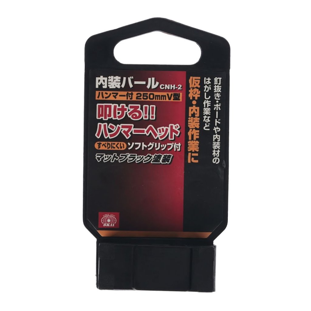 The SK11 Hammer Headed Claw Nail Puller, model CNH-2, is a versatile tool combining a nail puller and a scraper with a hammer head for added functionality. Ideal for nail pulling and interior stripping tasks, this tool features a soft grip design for secure handling, even with gloves. Constructed with a chrome coating for rust resistance, it ensures durability and reliability in a compact 250 mm size.
