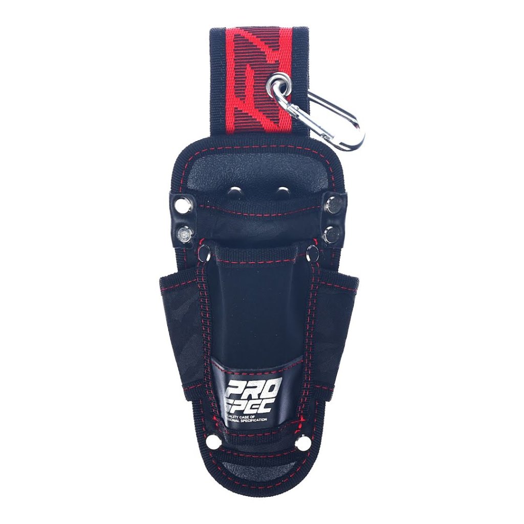 The SK11 Heavy Duty Tool Holder, model PRO-RD3, is designed for professionals who prioritize strength, design, and fit. Measuring 100 mm in width, 250 mm in height, and 60 mm in depth and weighing around 110 g, this tool holder is perfect for storing and carrying tools. It features a flexible belt loop that accommodates belts up to 60 mm wide, ensuring a secure fit.