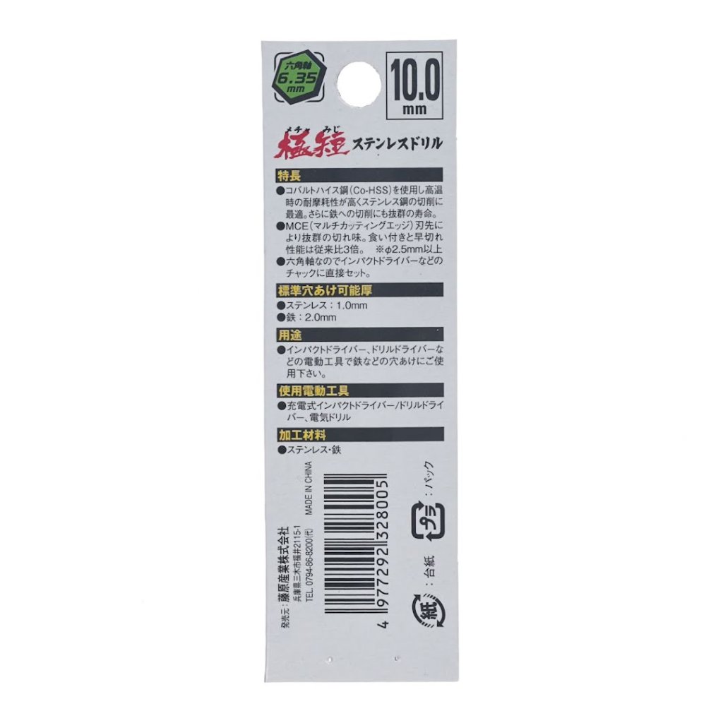 The SK11 HSS-Co Drill Bit is a highly efficient drill bit designed for precise drilling in stainless steel and iron. Made from cobalt high-speed steel (Co-HSS), it offers exceptional wear resistance at high temperatures, making it ideal for cutting tough materials. The 6.35 mm hexagonal shaft allows easy attachment to impact drivers and drill drivers. Its unique MCE (Multi Cutting Edge) tip ensures superior cutting performance, achieving up to three times faster cutting speeds than conventional drills.