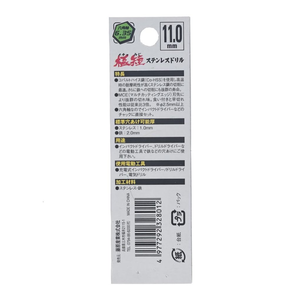 The SK11 HSS-Co Drill Bit is a highly efficient tool for drilling through stainless steel and iron. It is an 11.0 mm high-speed steel cobalt (HSS-Co) bit that offers exceptional wear resistance at high temperatures, making it ideal for cutting stainless steel. The 6.35 mm hexagonal shank ensures easy attachment to impact and drill drivers. With its MCE (Multi Cutting Edge), this drill bit performs three times faster than conventional bits. Its compact size ensures precision and ease of use in tight spaces.