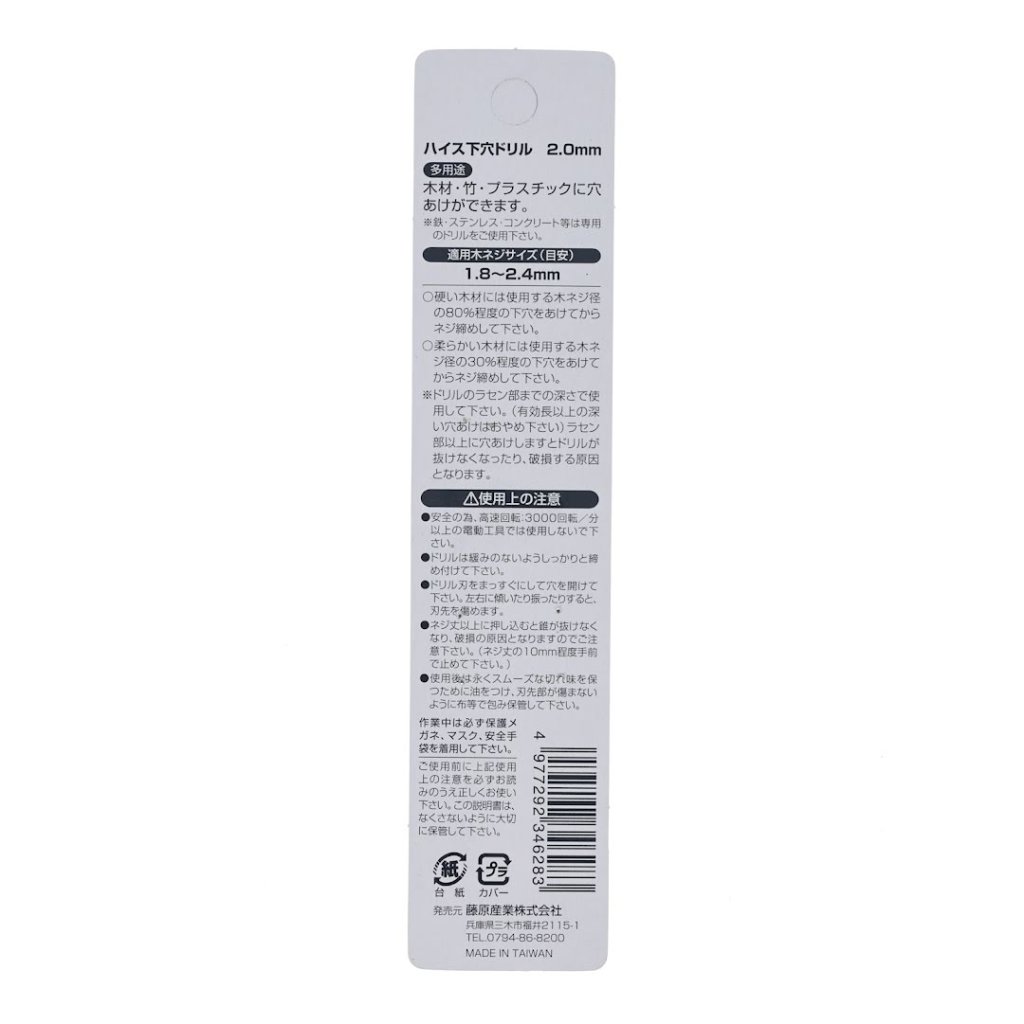 The SK11 HSS Tapered Drill Bit is ideal for creating pilot holes in wood, bamboo, and plastic. Crafted from high-speed steel, this 2.0 mm drill bit offers exceptional durability and can handle materials like aluminum and hard composite wood. The tapered tip allows for adjustable hole sizing, and the 6.35 mm hex shank ensures quick and easy attachment to impact drivers and electric drills. It is suitable for wood screws ranging from 1.8 mm to 2.4 mm.