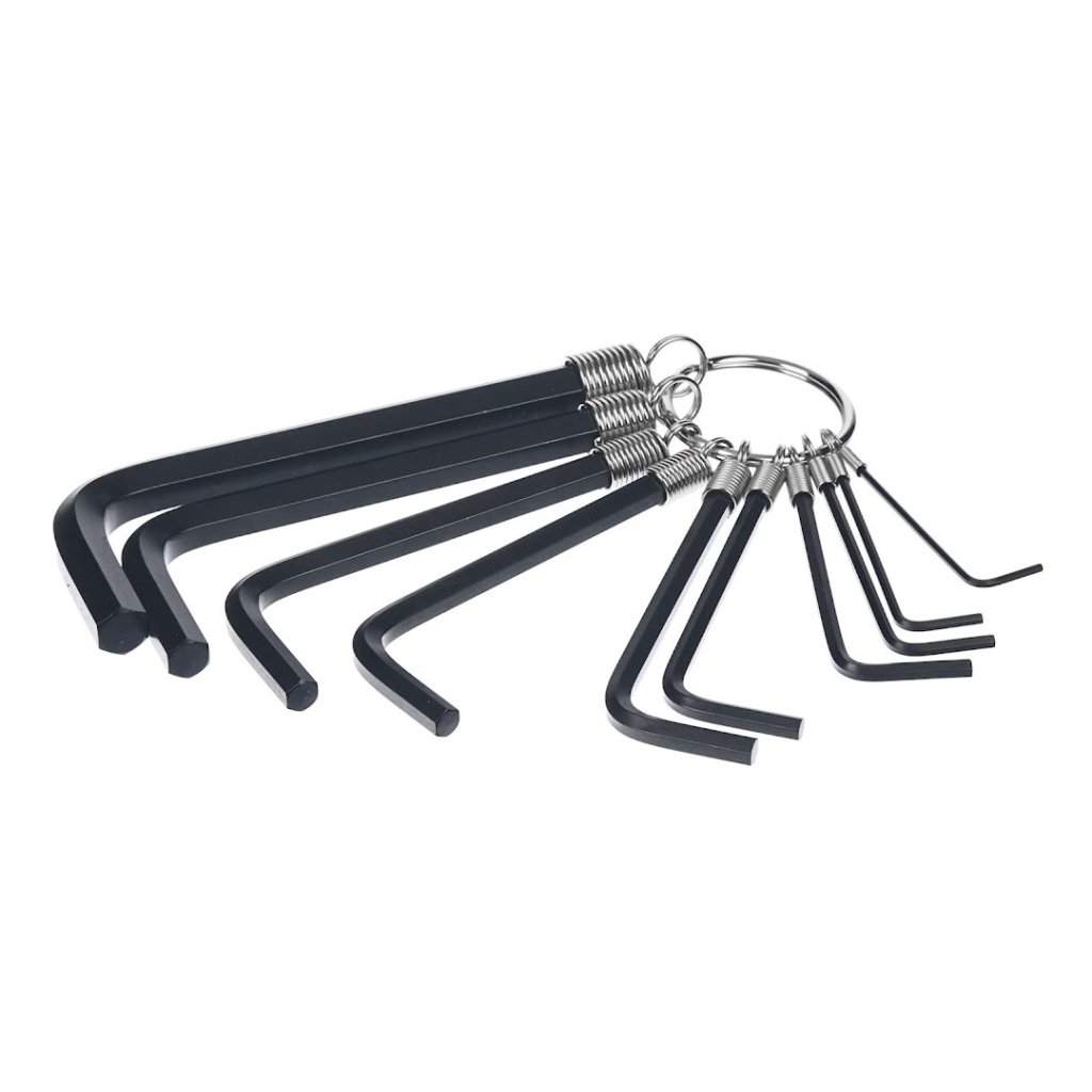 The SK11 Japanese 10-Piece Hex Key L-Wrench Set, No.4, is an essential toolset for professionals and DIY enthusiasts. This set includes ten inch-size hex wrenches designed to tighten or loosen hex bolts and set screws with precision. Each wrench features a convenient ring design for easy carrying and organization. Crafted to meet JIS standards, these wrenches assure durability and reliability for any task. Ensure to select the correct size for your bolts and screws and avoid using excessive torque to prevent damage.