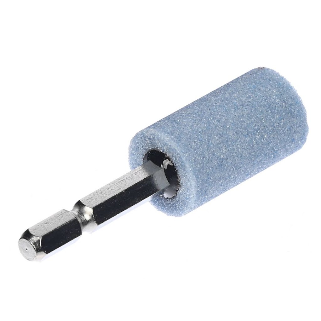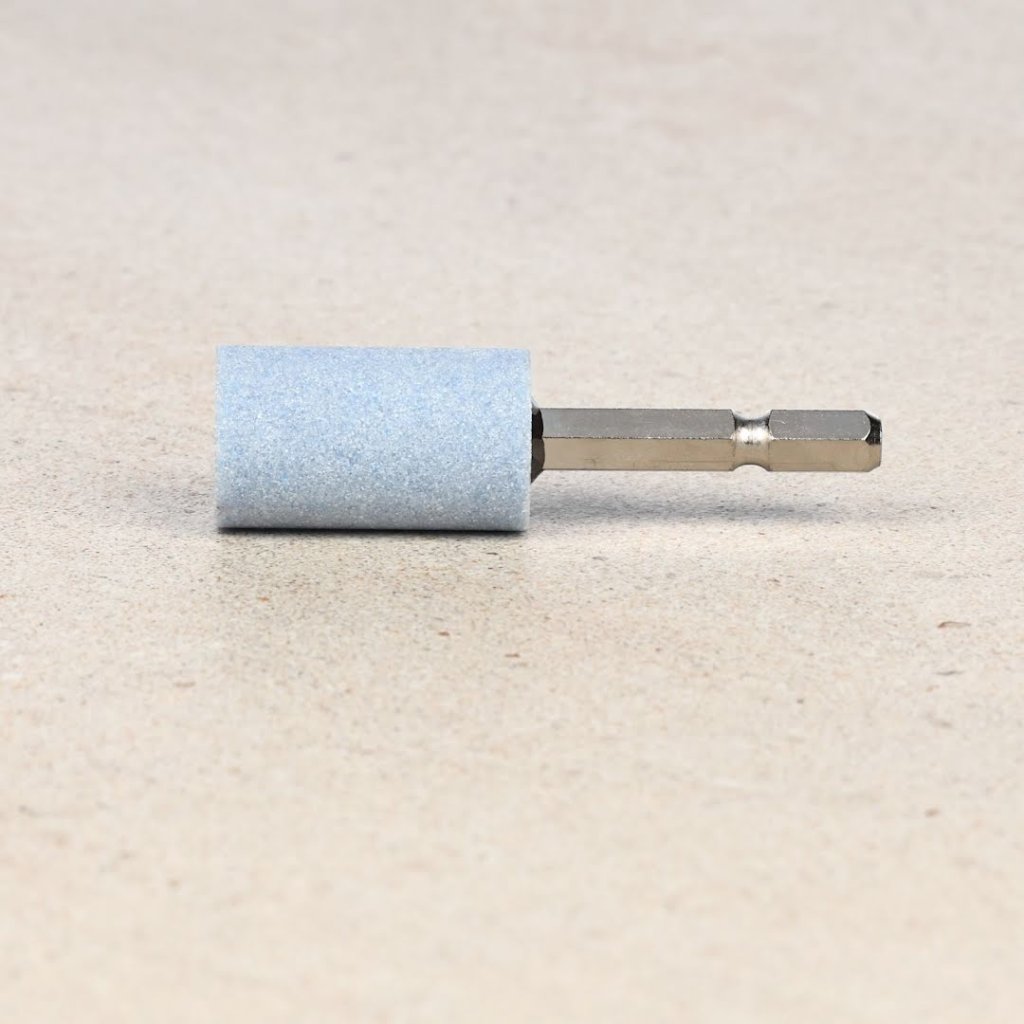 The SK11 Japanese Abrasive Stone Point, model No.52-HEX, is a versatile tool for grinding stainless steel and other general metals. It has a 6.35 mm hexagonal shaft and is compatible with electric drills and impact drivers. Its unique abrasive composition allows efficient grinding at low speeds, making it ideal for precision work. The cylindrical shape, with dimensions of 19 mm x 32 mm, ensures stability and minimal wobble during use.