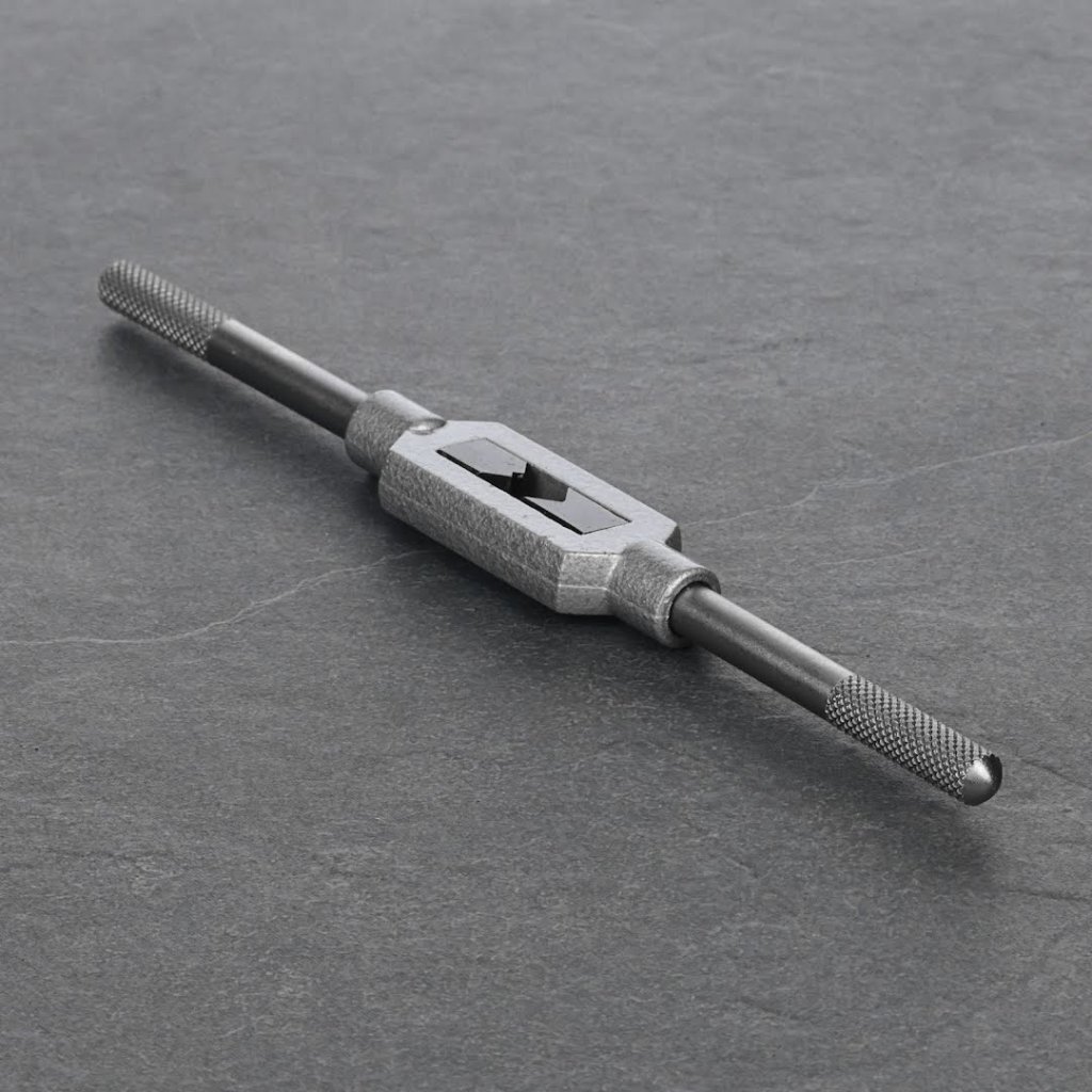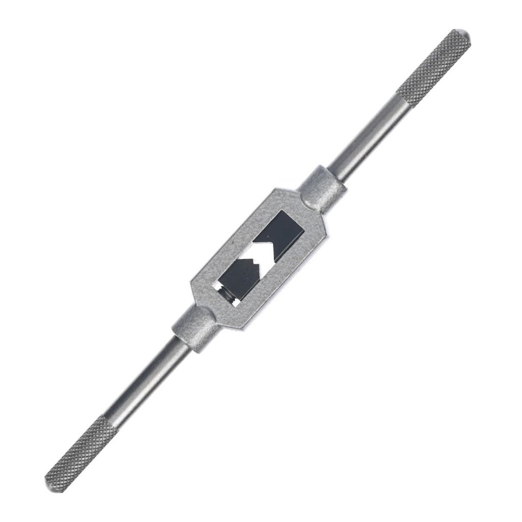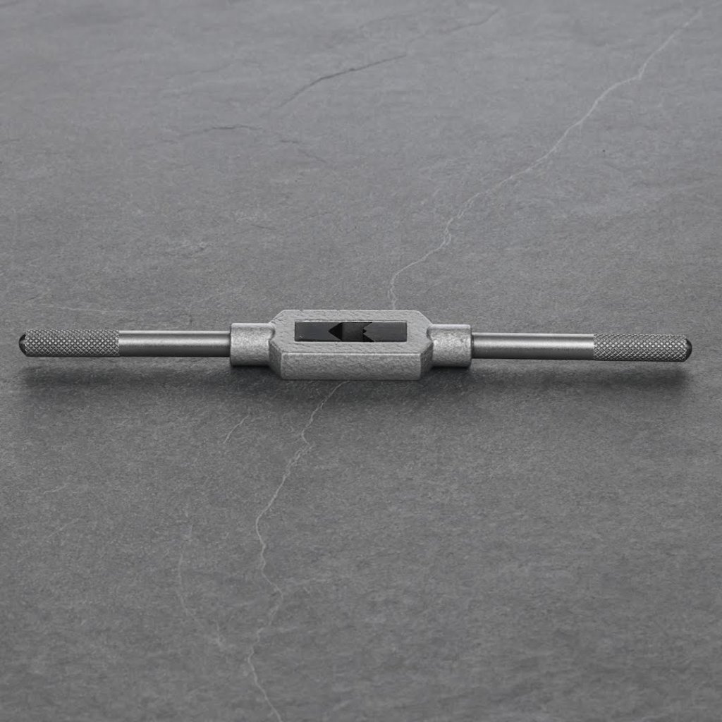 The SK11 Japanese Adjustable Tap Wrench is essential for general steel threading tasks (female threading). It features a robust design with sintered alloy jaws to minimize cracking and deformation. The long handle allows for easy threading with minimal effort. This tap handle supports tap sizes from M2 to M10, offering versatility for various threading needs.