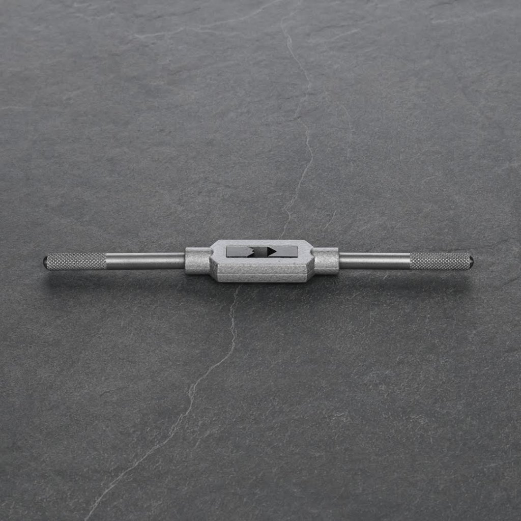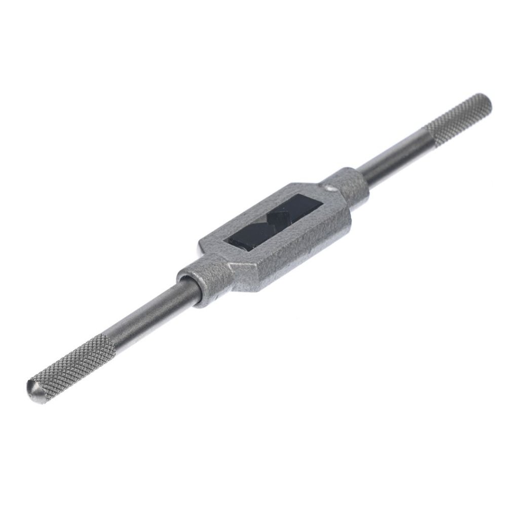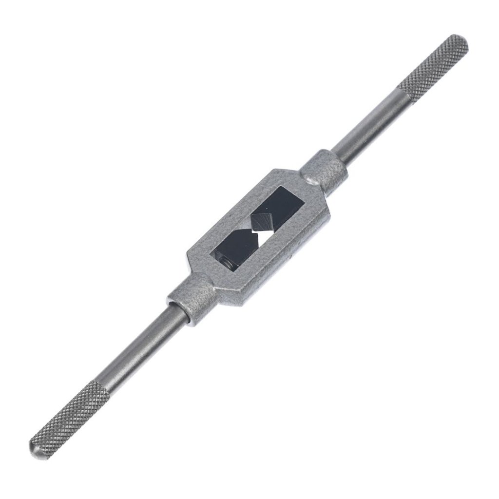 The SK11 Japanese Adjustable Tap Wrench is essential for general steel threading tasks (female threading). It features a robust design with sintered alloy jaws to minimize cracking and deformation. The long handle allows for easy threading with minimal effort. This tap handle supports tap sizes from M2 to M10, offering versatility for various threading needs.