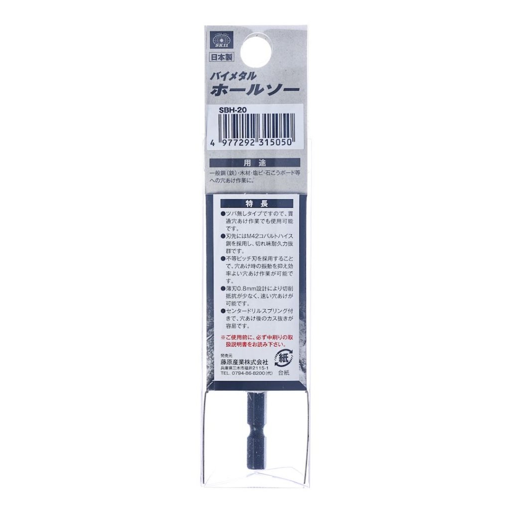 The SK11 Japanese Bimetal Hole Saw, model SBH-20, is expertly designed for drilling through general steel (iron), wood, PVC, and gypsum board. With a size of 20 mm, it features a 0.8 mm thin blade design to reduce cutting resistance, allowing for faster drilling. The M42 cobalt high-speed steel cutting edge ensures excellent sharpness and durability. Additionally, the saw incorporates a center drill spring for easy chip removal post-drilling. It is suitable for electric drills operating at 600-1200 RPM.