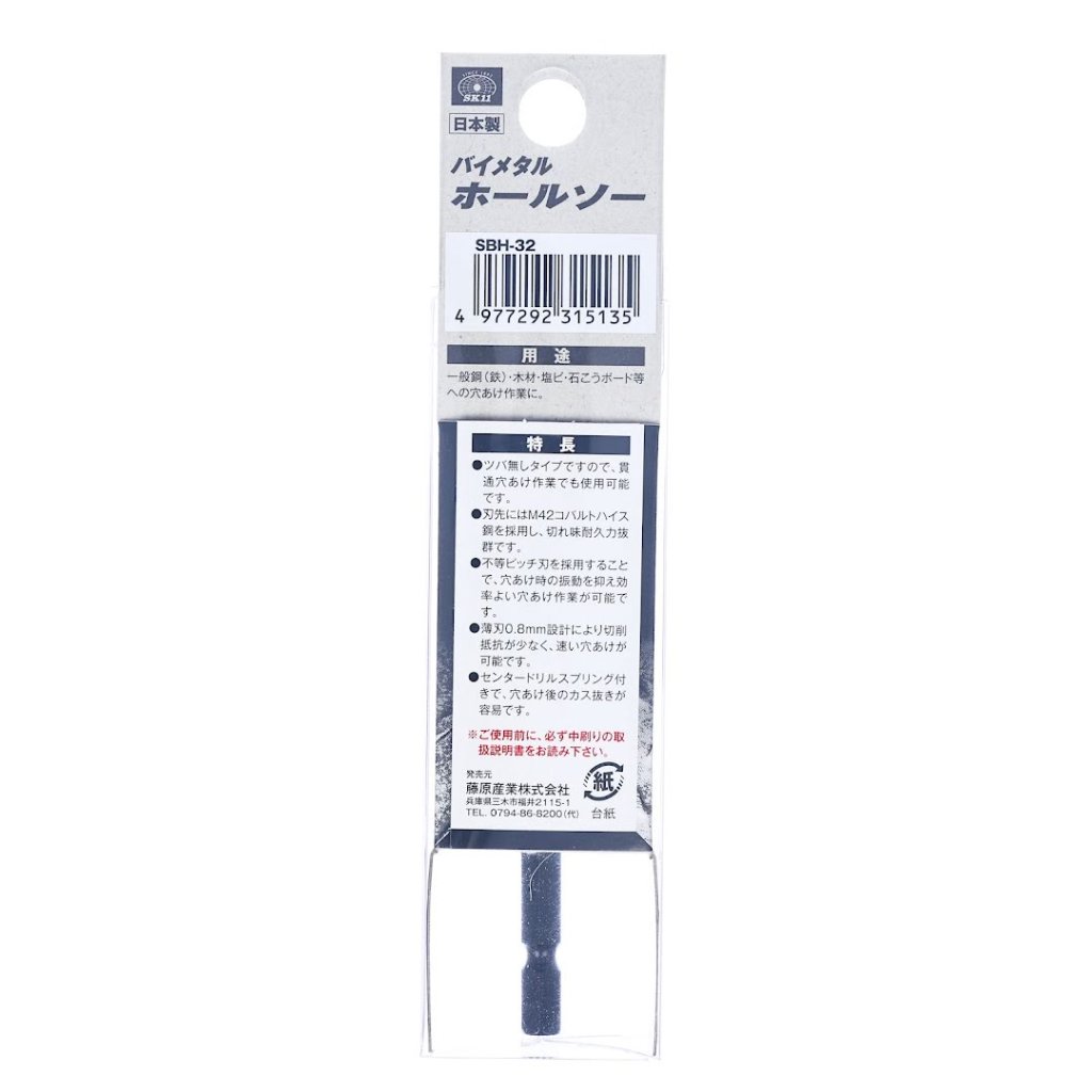 The SK11 Japanese Bimetal Hole Saw, model SBH-32, is engineered for efficient perforation in general steel, wood, PVC, and gypsum board. The M42 cobalt high-speed steel cutting edge ensures exceptional sharpness and durability. Featuring a 0.8 mm thin blade, it reduces cutting resistance for faster drilling. Additionally, the saw includes a spring-loaded center drill for easy chip removal post-drilling. It is suitable for electric drills operating at 600-1200 RPM.