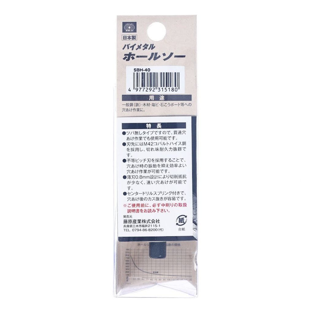 The SK11 Japanese Bimetal Hole Saw, model SBH-40, is designed for efficient drilling through general steel, wood, PVC, and gypsum boards. Its M42 cobalt high-speed steel cutting edge ensures excellent sharpness and durability. The saw's 0.8 mm thin blade minimizes cutting resistance, allowing for quicker drilling. Additionally, the center drill spring facilitates easy removal of waste after drilling.