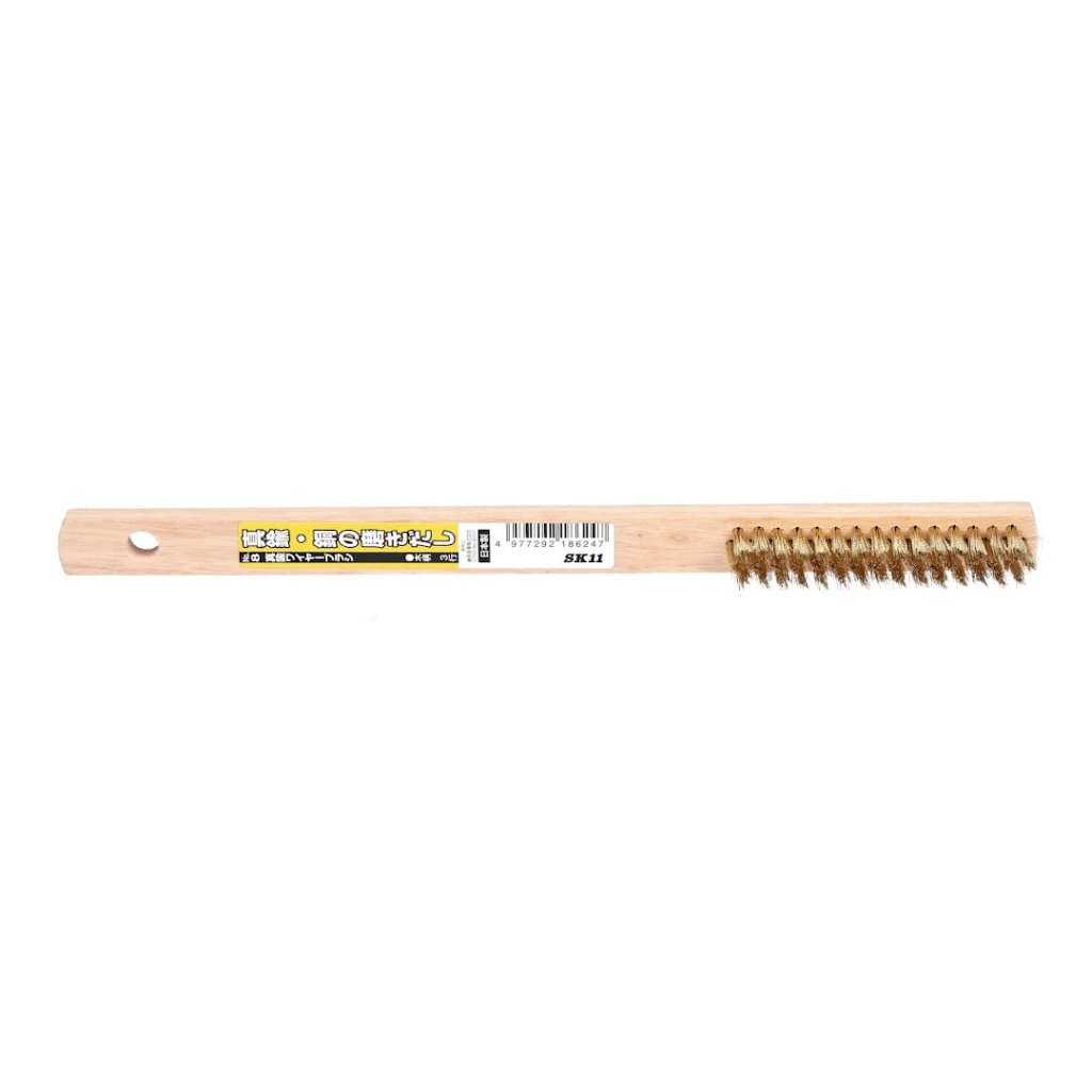 SK11 Japanese Brass Wire Brush with Wooden Handle, 3 Rows - No.8