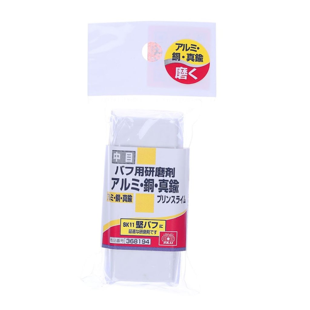 The SK11 Japanese Buffing Compound is a specialized medium-grit polishing compound designed to effectively buff aluminum, copper, and brass surfaces. Weighing 61 g and measuring 68 mm in width, 33 mm in height, and 50 mm in depth, this product is easy to handle and apply. Ideally suited for firm buffs, it requires only a light application in the direction of the tool's rotation to achieve optimal results.