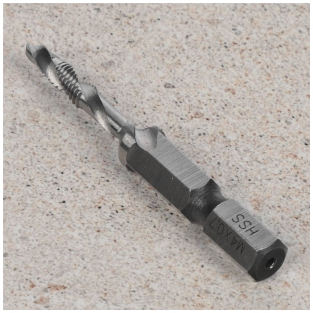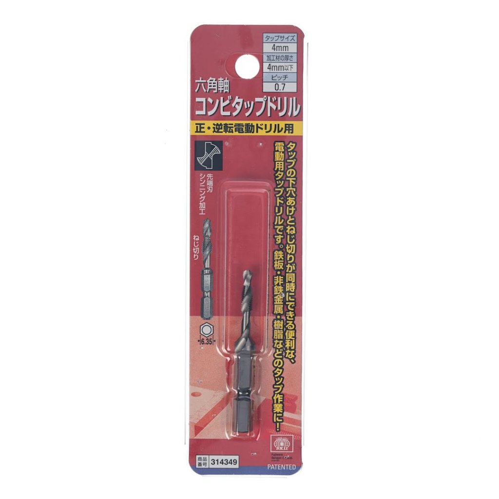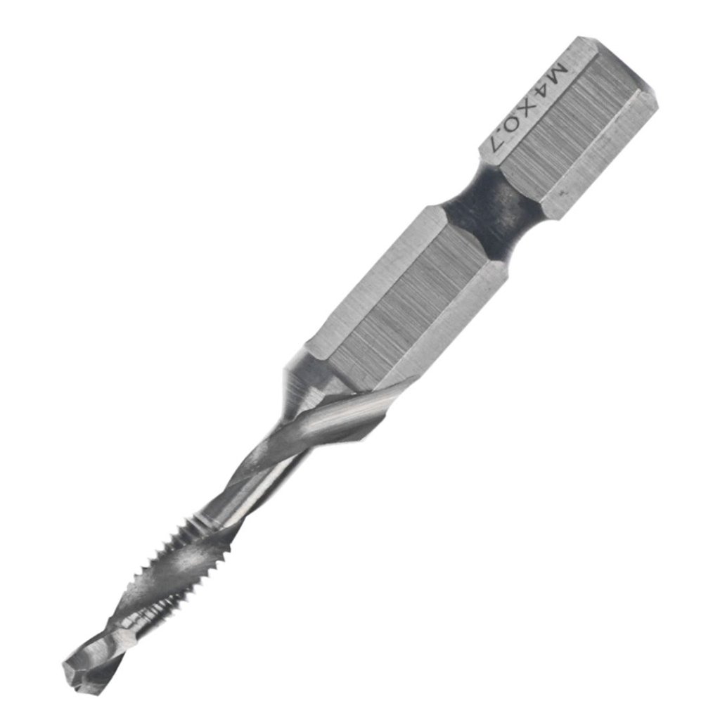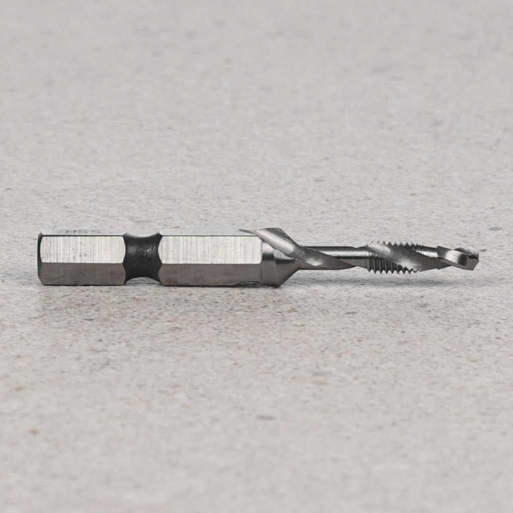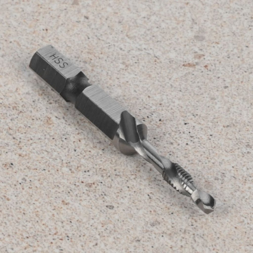 The SK11 Japanese Combined Drill and Tap Bit is designed for tapping operations on materials such as iron plates, non-ferrous metals, and resins. This convenient tap drill allows simultaneous drilling and threading, saving time and effort. It features a 6.35 mm hex shank and is compatible with reversible electric drills. It is suitable for materials up to 4 mm thick, with an optimal rotation speed of 800 RPM for iron.