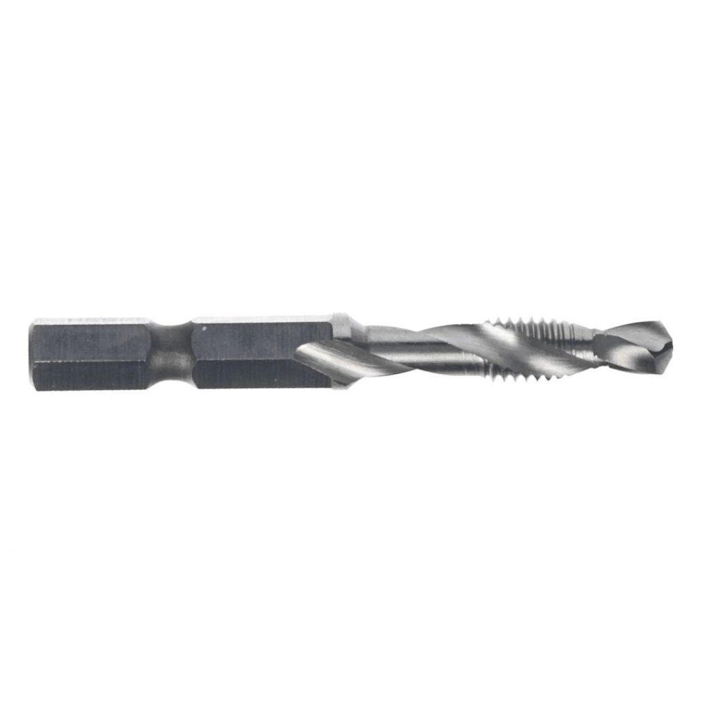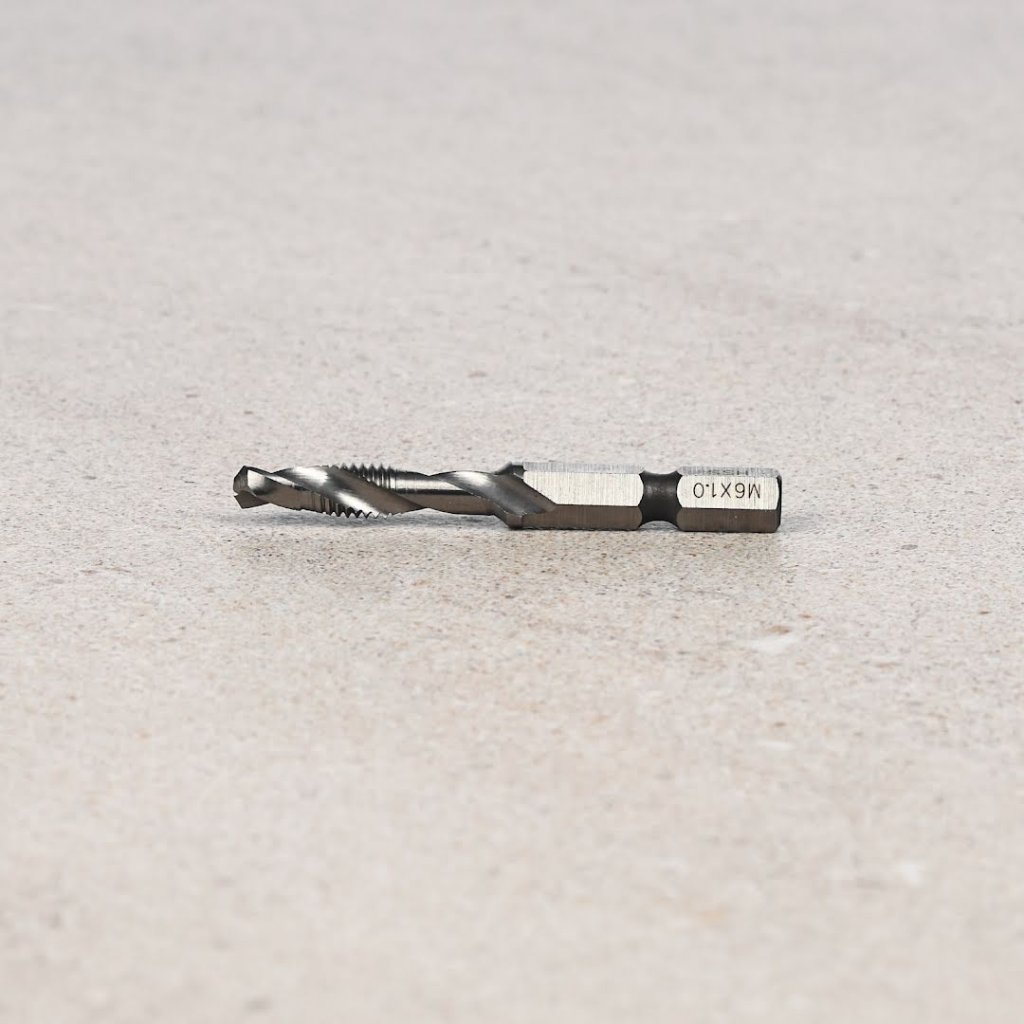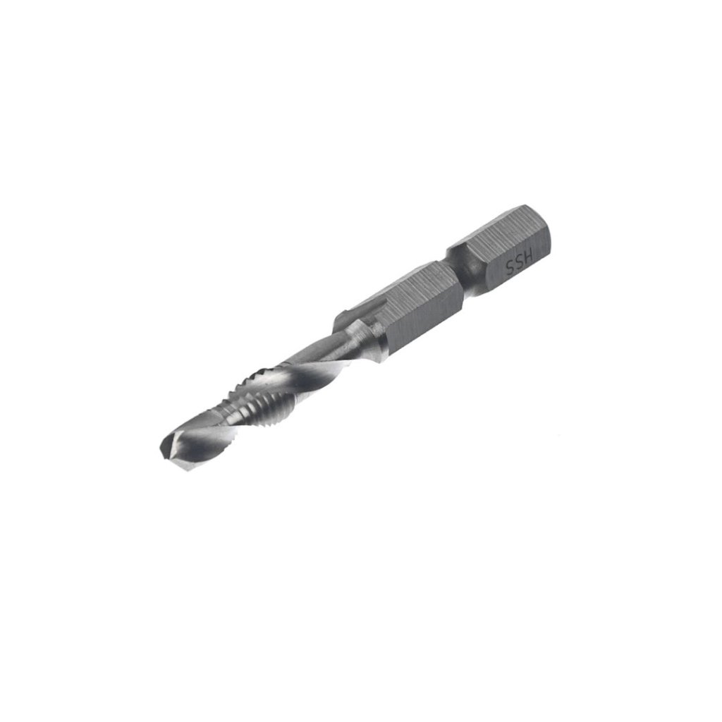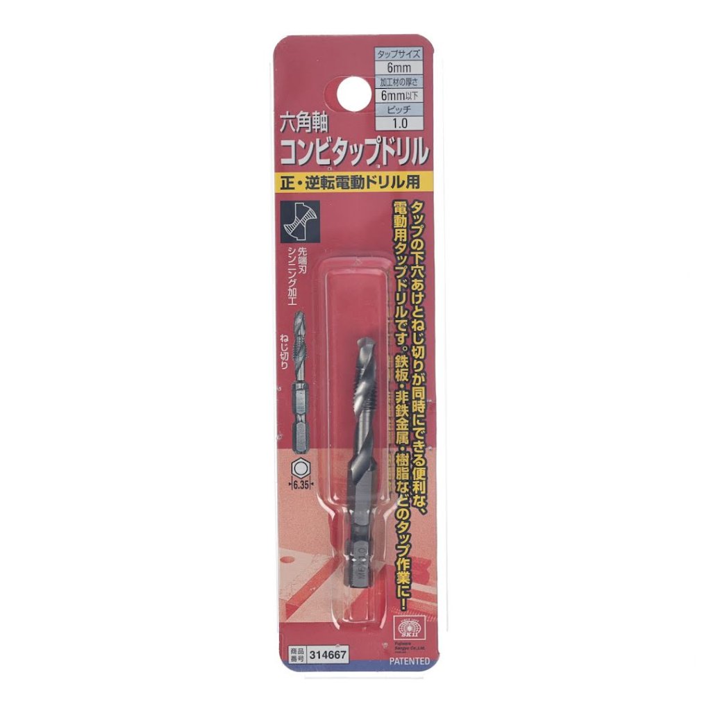 The SK11 Japanese Combined Drill and Tap Bit is a versatile tool for tapping operations on steel plates, non-ferrous metals, and plastics. It allows you to drill pilot holes and tap threads simultaneously, making it a convenient addition to any toolbox. Suitable for forward and reverse rotation power drills, this bit is equipped with a 6.35 mm hex shank and optimized for materials up to 6mm thick. Its specifications include a tap size of 6.0 mm x 1.0 pitch.