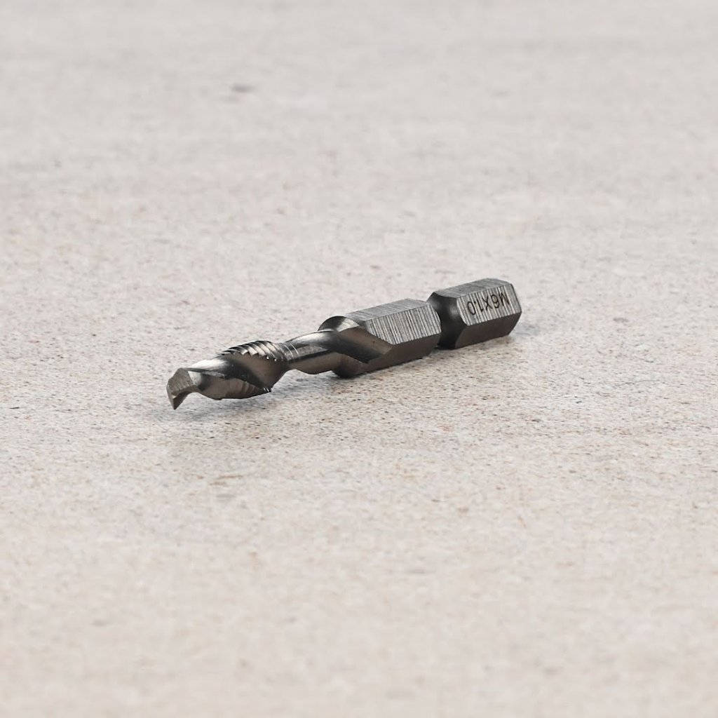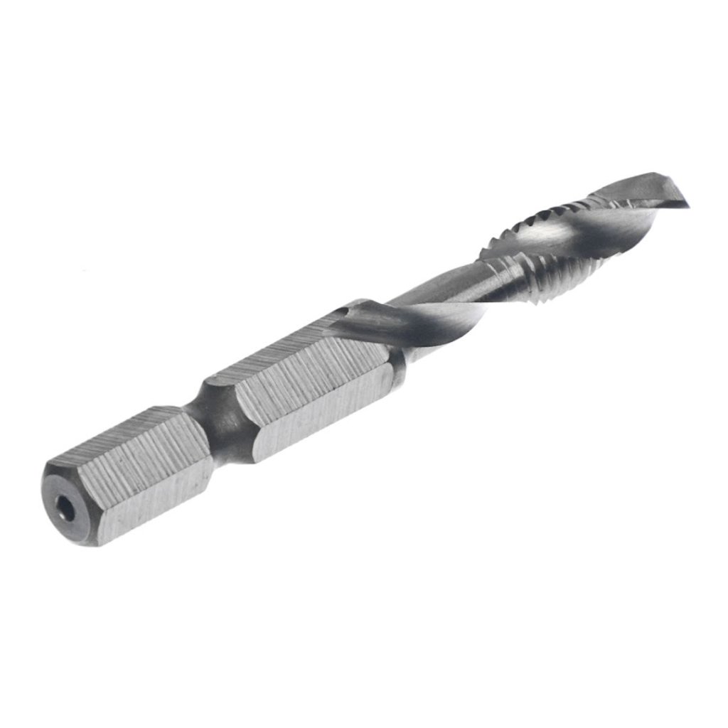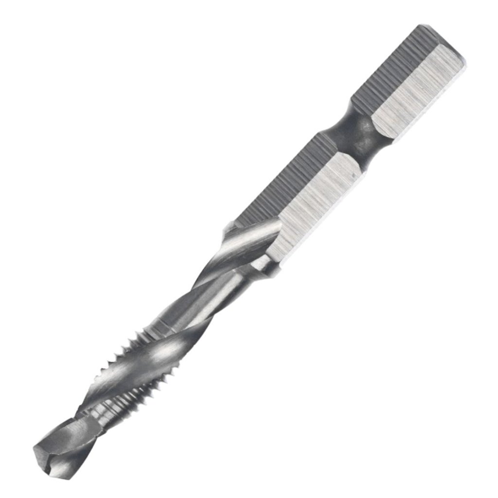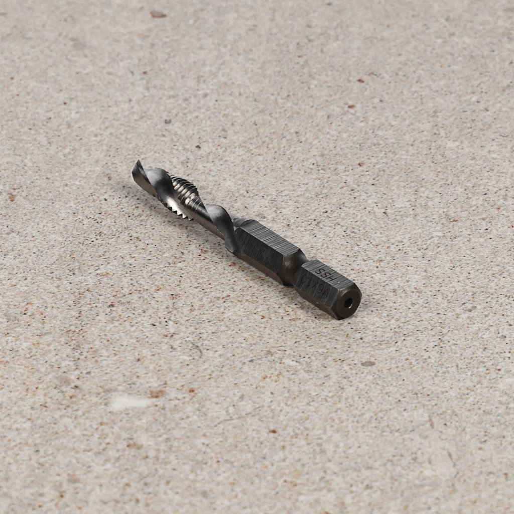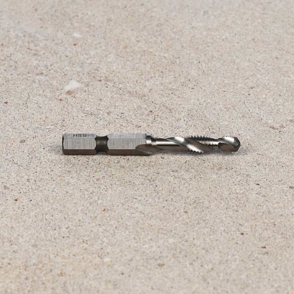 The SK11 Japanese Combined Drill and Tap Bit is a versatile tool for tapping operations on steel plates, non-ferrous metals, and plastics. It allows you to drill pilot holes and tap threads simultaneously, making it a convenient addition to any toolbox. Suitable for forward and reverse rotation power drills, this bit is equipped with a 6.35 mm hex shank and optimized for materials up to 6mm thick. Its specifications include a tap size of 6.0 mm x 1.0 pitch.