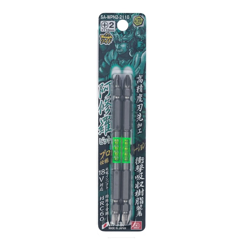 SK11's Japanese Super Ashura durable bits excel in precision fastening with shock-absorbent tech, which is ideal for heavy-duty tasks. Made in Japan.