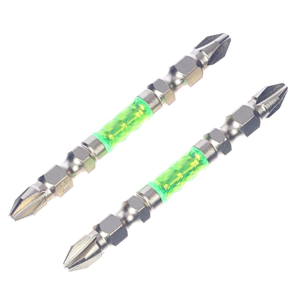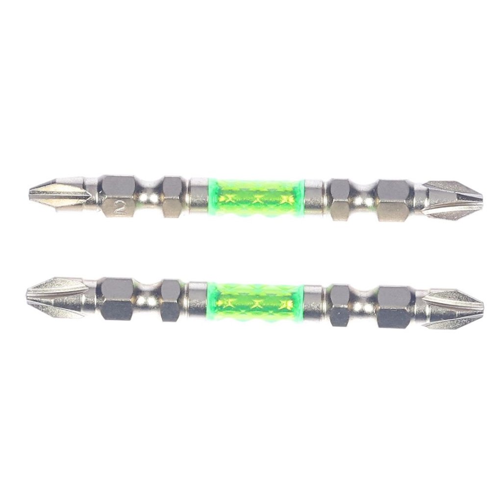 The SK11 Japanese Double End Torsion Screwdriver Bit, model SSA-WP02-2065, is a highly durable and resilient tool made from high-hardness special alloy steel featuring a shock-absorbing resin for enhanced performance. Designed for use with drill drivers and impact drivers, this bit is ideal for various screw-tightening tasks. Its advanced design includes a Phillips No.2 x 65 mm tough wide tip and a convenient magnet. The bit's specifications ensure high precision and durability, making it a high-quality Japanese-made product. Its distinctive green tube color stands out in both functionality and design.