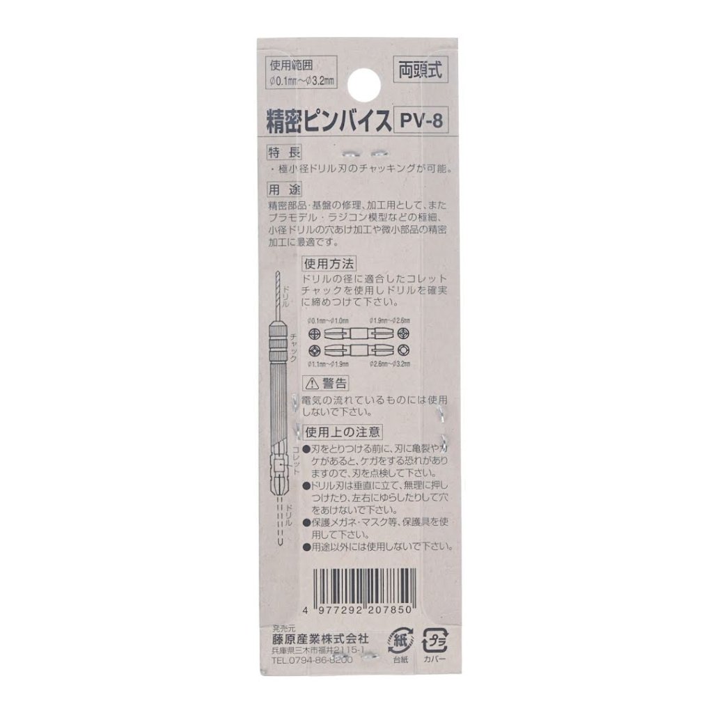 The SK11 Japanese Double-Ended Precision Pin Vise Drill, model PV-8, is versatile for precision work such as model kits and delicate component repairs. This double-ended pin vise can handle drill bits with a 0.1 to 3.2 mm diameter, making it ideal for fine drilling and detailed tasks.