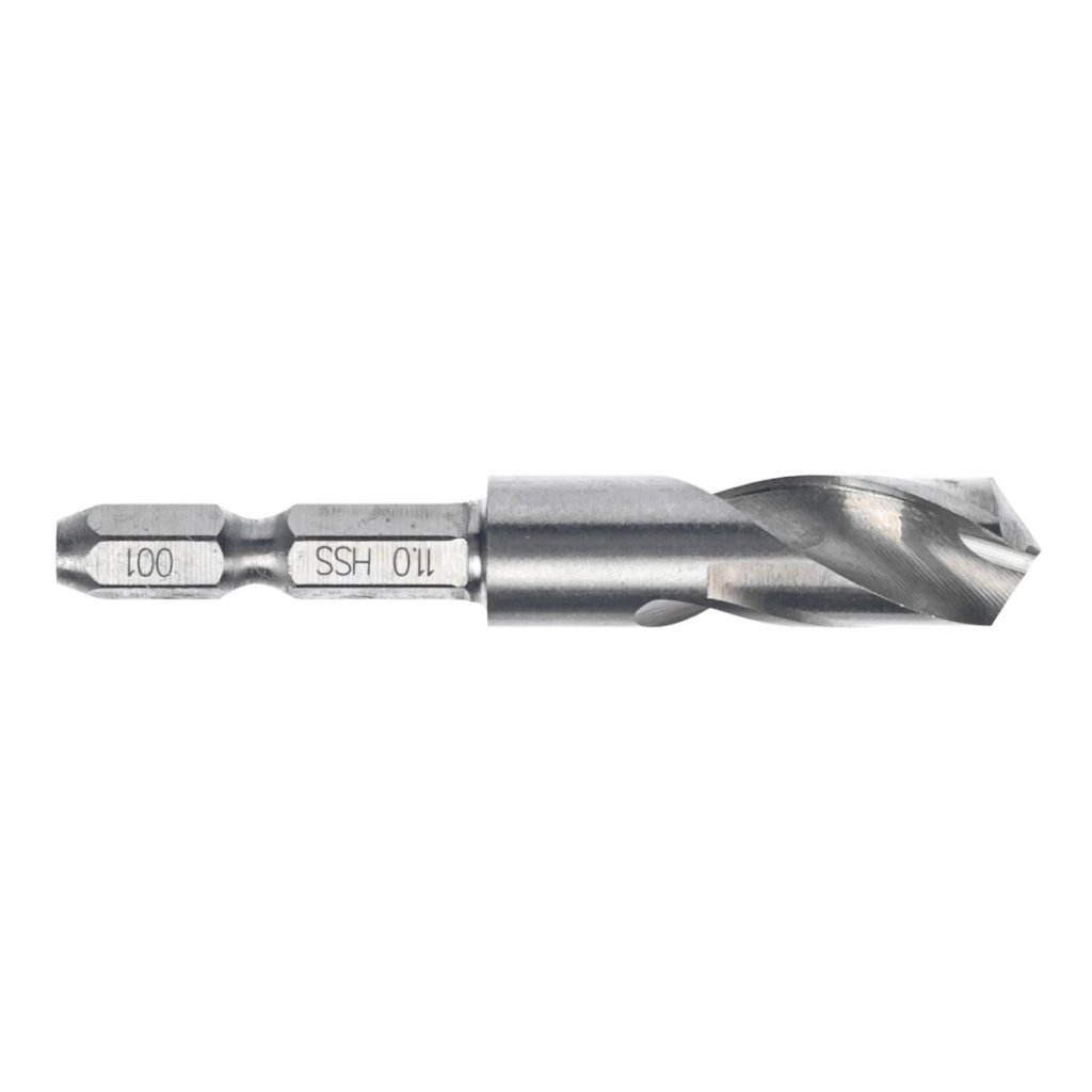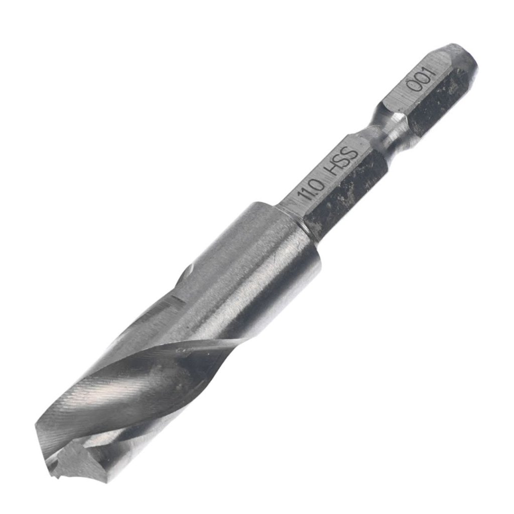The SK11 Japanese Drill Bit is designed for precise drilling in confined spaces. With a diameter of 11.0 mm and a total length of 70 mm, it is perfect for working with steel, aluminum, resin, and other easy-to-cut materials. Its hexagonal shank ensures a secure fit in your drill and eliminates the need for pilot holes, making your work more efficient.