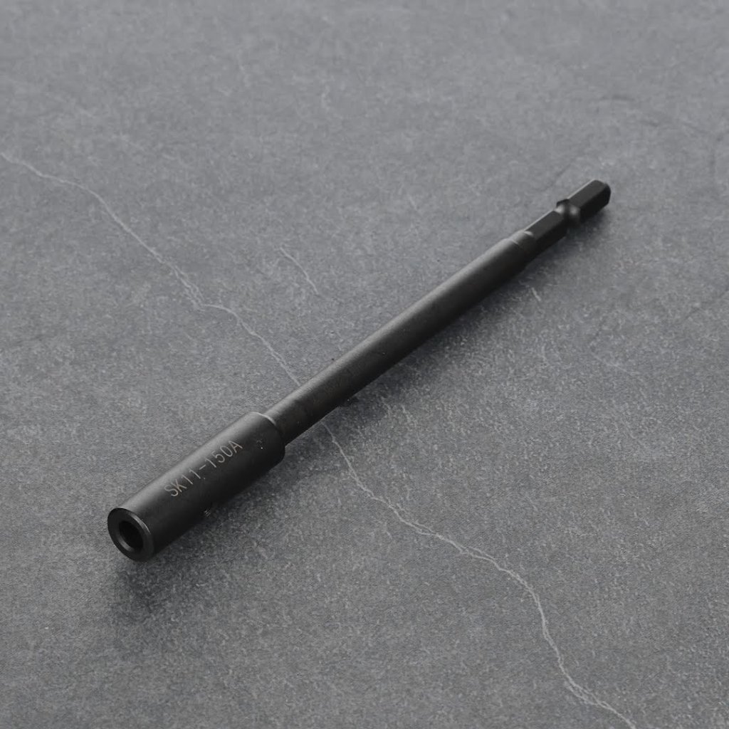 The SK11 Japanese Impact Extension Bar is an essential accessory designed to extend the shaft of 6 mm drill parts, such as mounted stones and brushes. This versatile tool can convert 6 mm shaft accessories to a hexagonal shaft, making it compatible with electric drills and impact drivers. With a length of 150 mm, it aids in reaching recessed areas effectively. It supports a maximum rotational speed of 3000 RPM and is ideal for various drill types, including rechargeable impact drivers and electric drills.