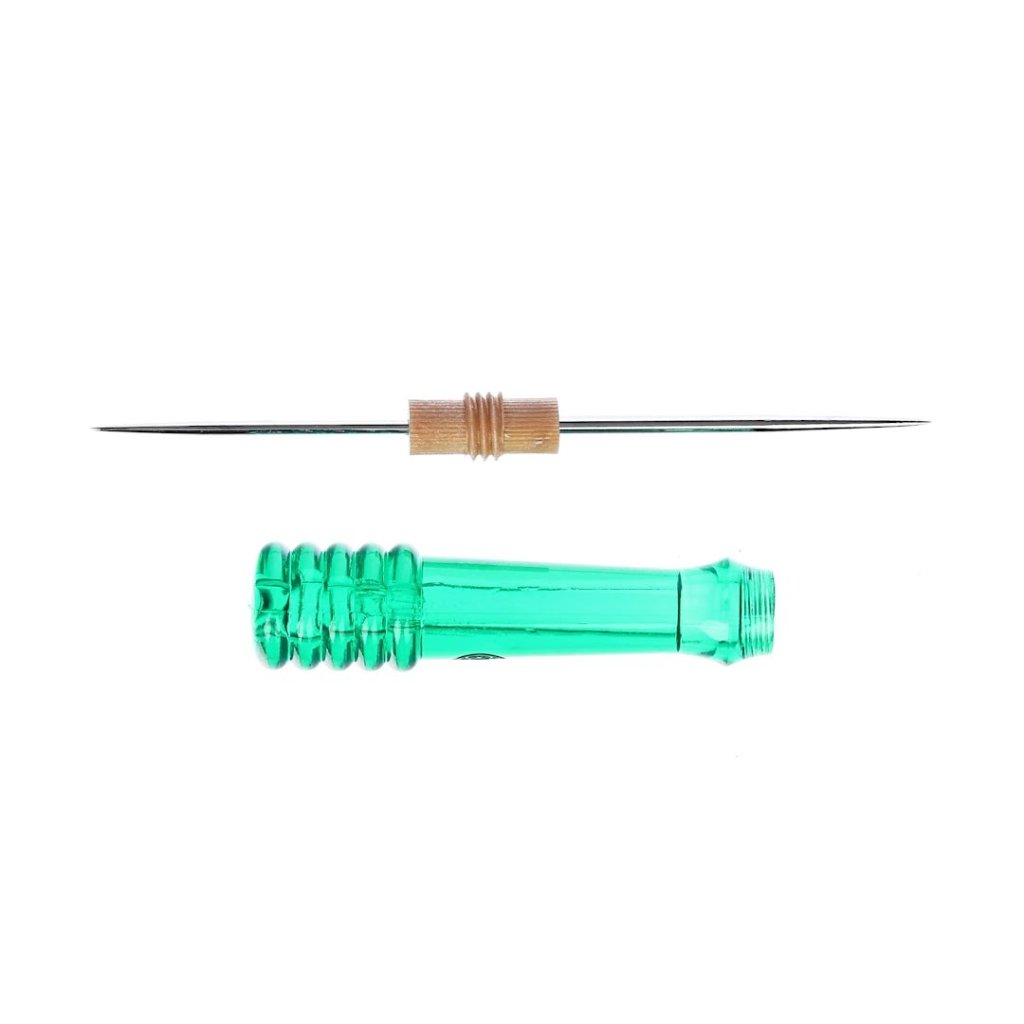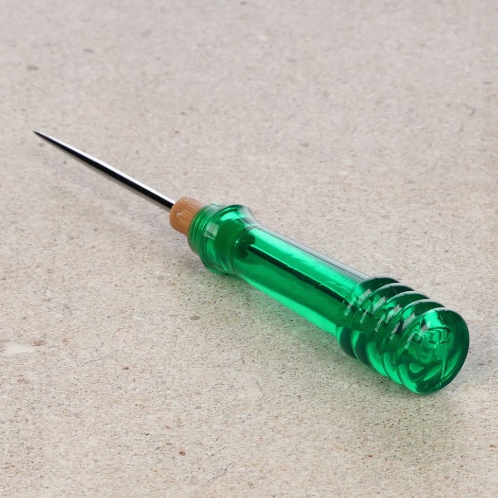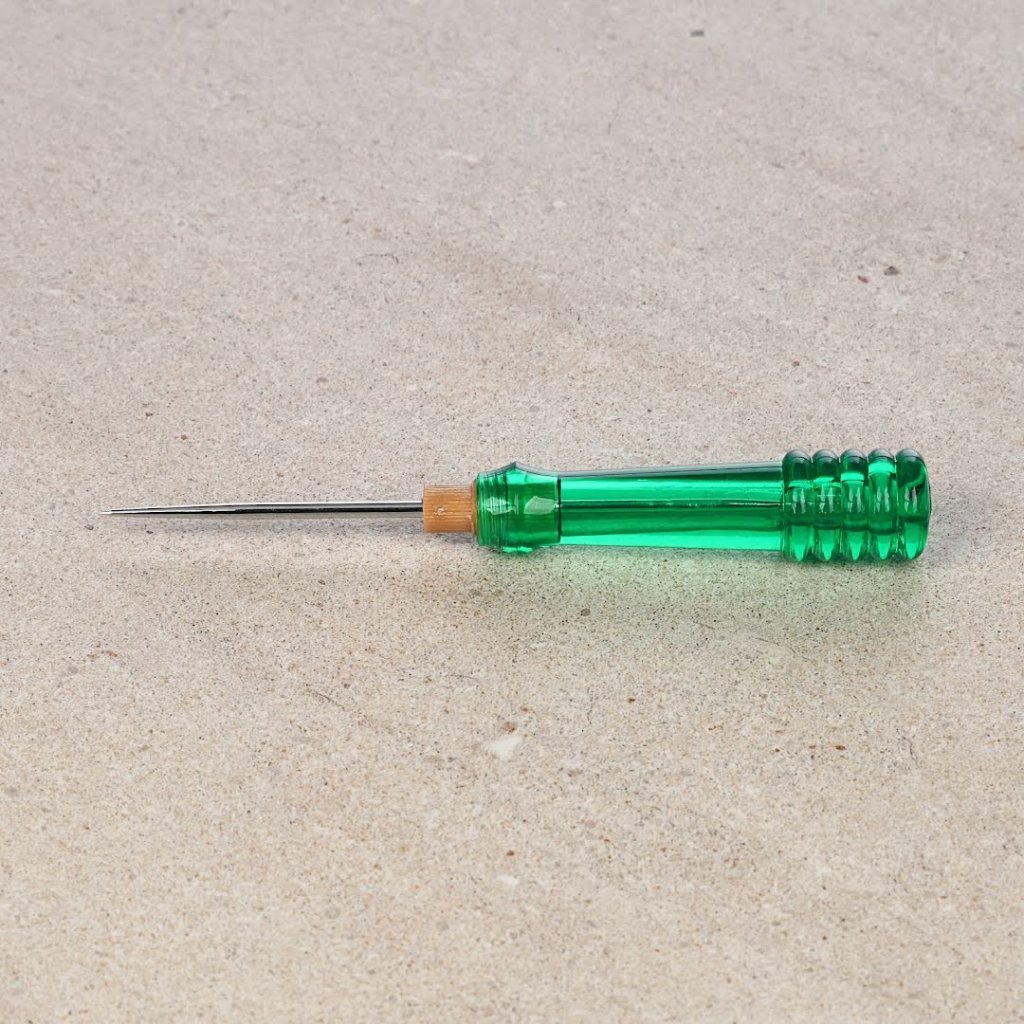 The SK11 Japanese Interchangeable Scratch Awl, model SGN-1, is a versatile tool for hole punching, scribe marking, and precision tasks. This tool features two interchangeable needles: a 60 mm thick needle and a 45 mm thin needle, making it adaptable for various tasks. Additionally, the needles can be conveniently stored in the handle when not in use.