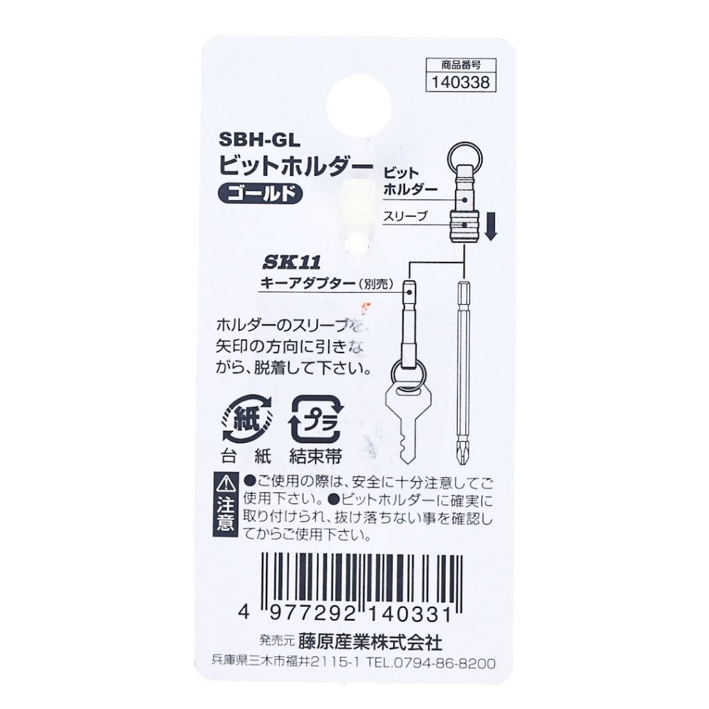 The SK11 Japanese Keychain Bit Holder, model SBH-GL, offers a reliable and durable solution to prevent the loss and fall of drill bits and keys. Crafted from all steel, this bit holder ensures long-lasting performance and a secure hold. Its easy slide-on attachment feature allows for quick and convenient bit changes. Compatible with 6.35 mm shanks, this bit holder is essential to any toolkit.