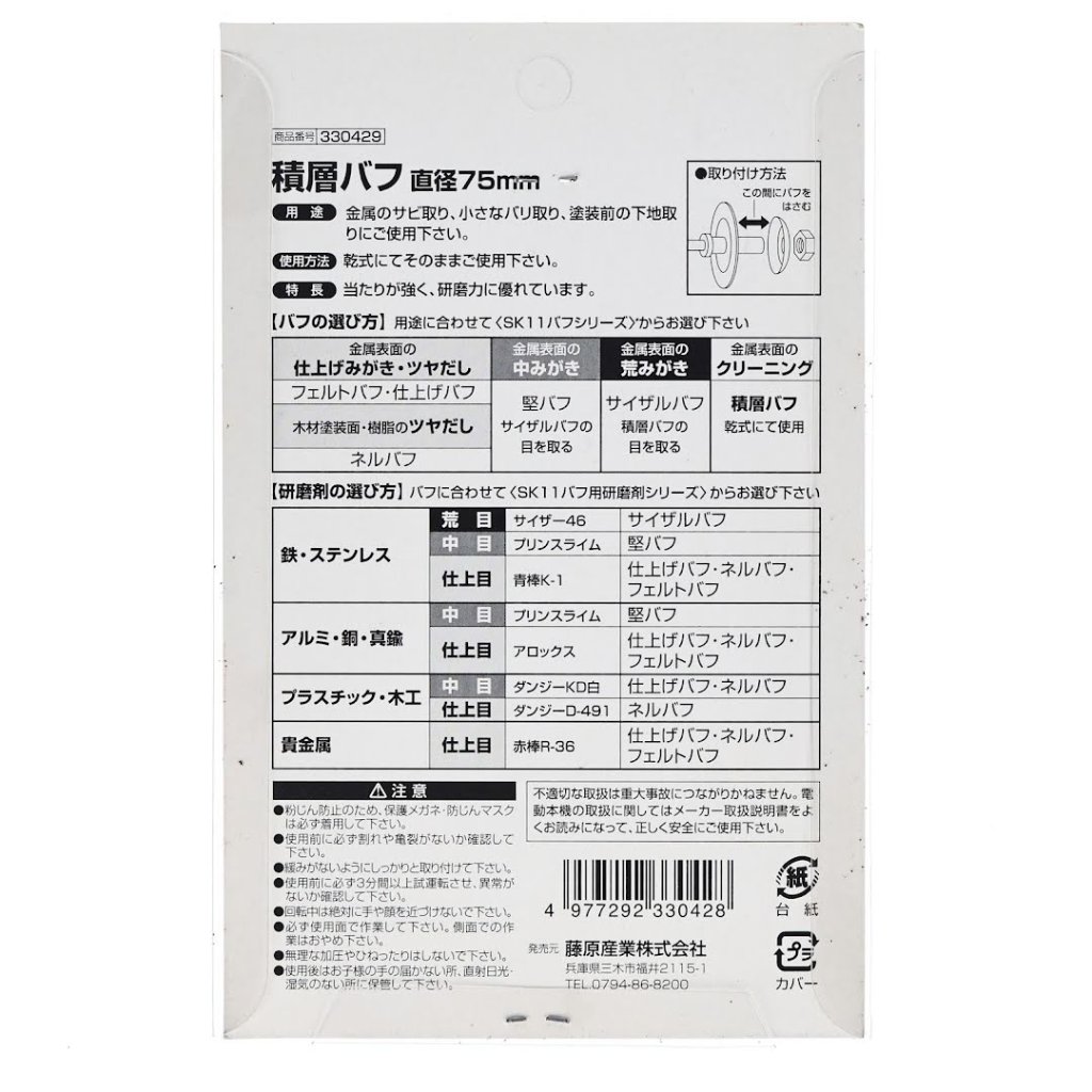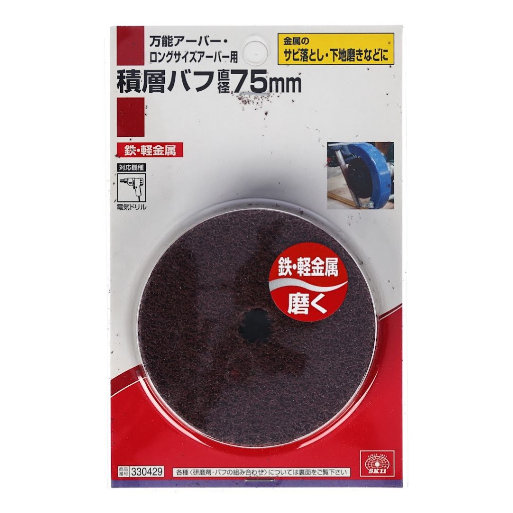 The SK11 Japanese Laminated Buffing Polishing Wheel is designed for cleaning metal surfaces and is ideal for rust removal, deburring, and preparing surfaces for painting. Measuring 75 mm in diameter, this buffing wheel can be used dry and is compatible with electric drills.