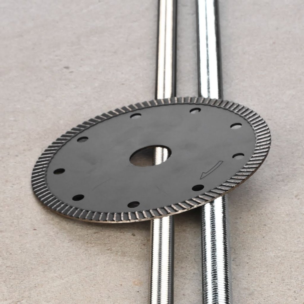 The SK11 Multi Purpose Diamond Disc, model SMD-125, is a versatile diamond cutter designed for cutting a wide range of materials, including concrete, granite, marble, ceramic tiles, blocks, and bricks. Measuring 125 mm in diameter with a 2.0 mm blade thickness, this tool boasts a unique wave-shaped design on its sides, which improves chip removal and enhances work efficiency. Equipped with high-quality diamond chips, it provides exceptional durability and cutting performance, making it ideal for concrete cutting. The disc is compatible with 125 mm disc grinders and operates at a maximum speed of 12200 RPM.