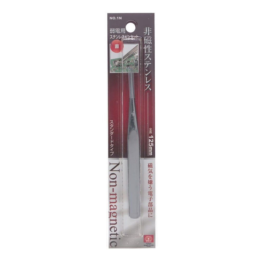 The SK11 Japanese Non-Magnetic Tweezers, model No.1N, are designed for precision tasks such as TV and radio wiring repairs, circuit board fine work, and low-voltage tasks. Made from non-magnetic stainless steel (18.8 chrome), these tweezers are ideal for working with electronic components sensitive to magnetism. They provide accuracy and ease for delicate operations with a total length of 125 mm and a straight tip.