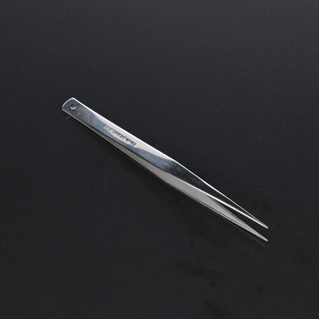 The SK11 Japanese Non-Magnetic Tweezers, model No.3N, are ideal for precise electronics work, including TV and radio wiring repairs. These tweezers are made from non-magnetic stainless steel (18.8 chrome), perfect for handling sensitive electronic components. Featuring a 150 mm length and a straight tip, they ensure precision and ease of use in detailed tasks. Their compact design, measuring 10 mm in width and 150 mm in height and weighing only 18 g, makes them an essential tool for any electronics toolkit.