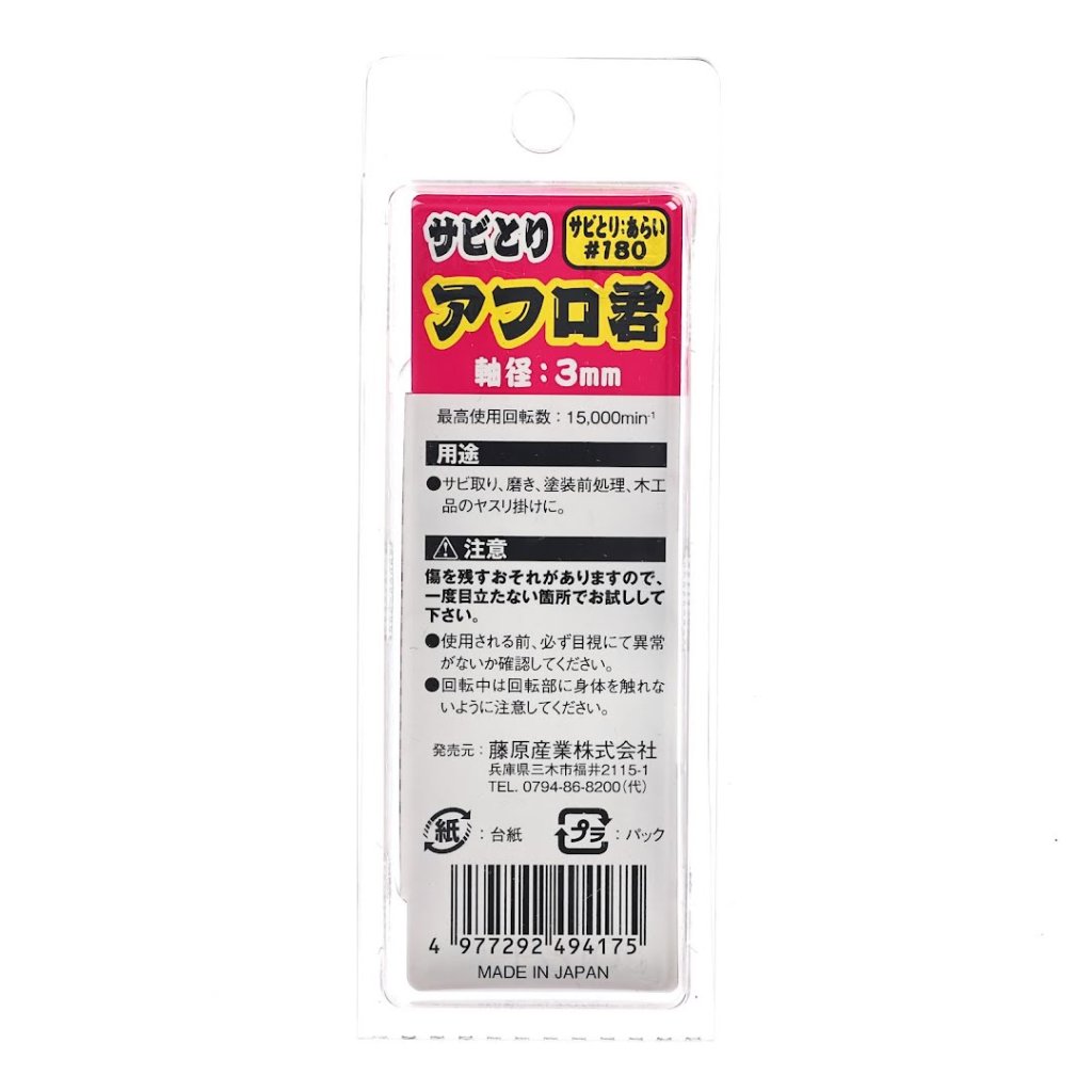 The SK11 Japanese Non-Woven Abrasive Flap Wheel is designed for easy and efficient rust and dirt removal. With a 25mm head, it fits into narrow spaces, making it perfect for detailed work using a mini router. The unique afro shape ensures it adapts to various surfaces, providing thorough cleaning. It features a 3 mm shank, 25 mm outer diameter, and #180 grit, with a maximum rotational speed of 15000 RPM. Always test on an inconspicuous area first to prevent potential damage.